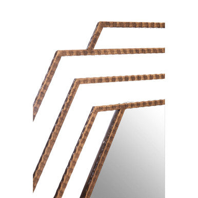 The multi-layered hexagon adds depth, turning the mirror into a sculptural accent that plays beautifully with light. The nuanced antique finish provides dimension and character, pairing equally well with marble, wood, and richly painted walls.