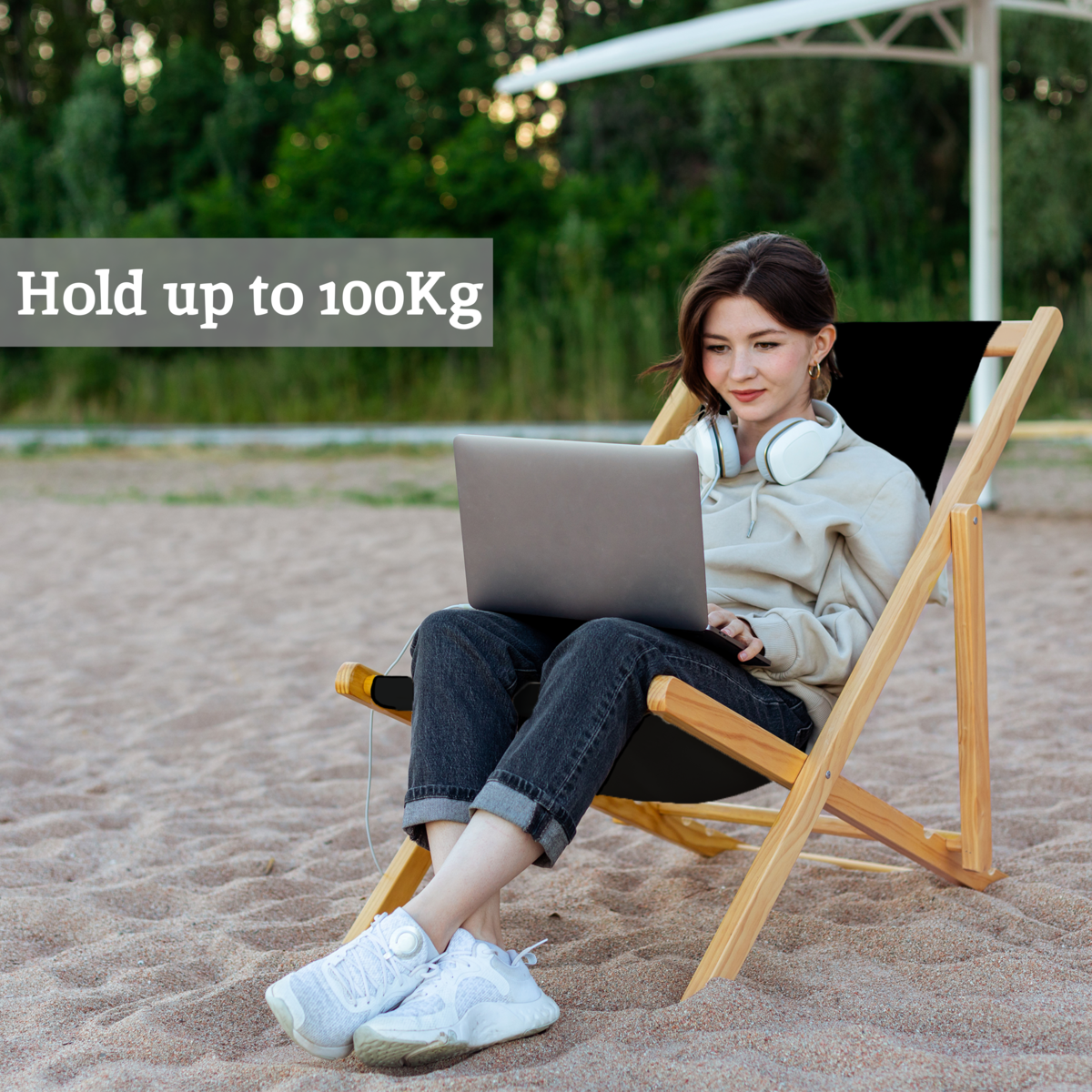 Beauport this chair has a tough, solid hardwood frame which has a natural colour that gives it a fresh and light appeal. Notches in the rear legs allow the seating position to be adjusted from a lazy recline to a more upright style. The black sling means adds a modern and airy accent to the patio and garden.ÂÂ