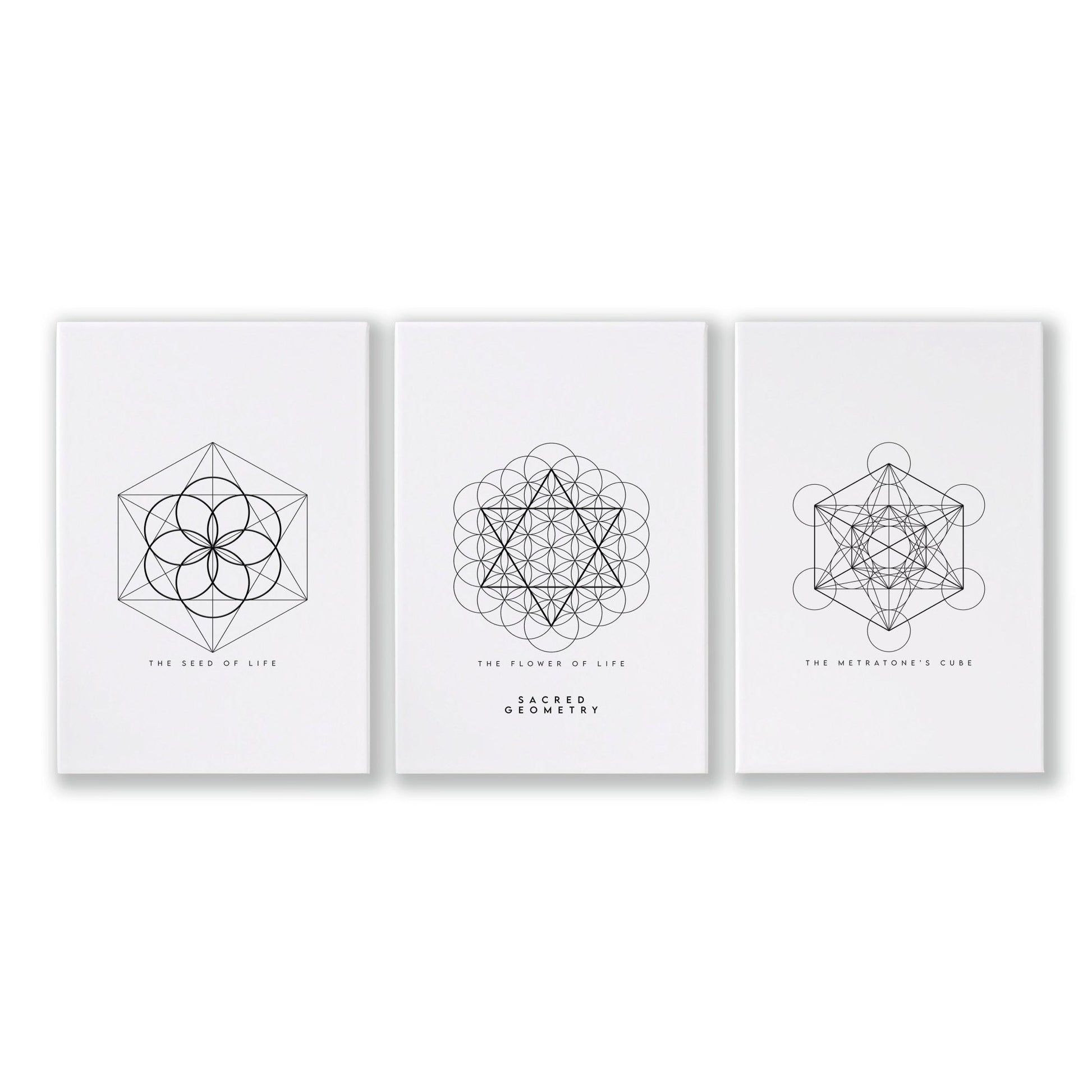 Bedrooms Black And White | Set of 3 Sacred Geometry Wall Art Prints Details: