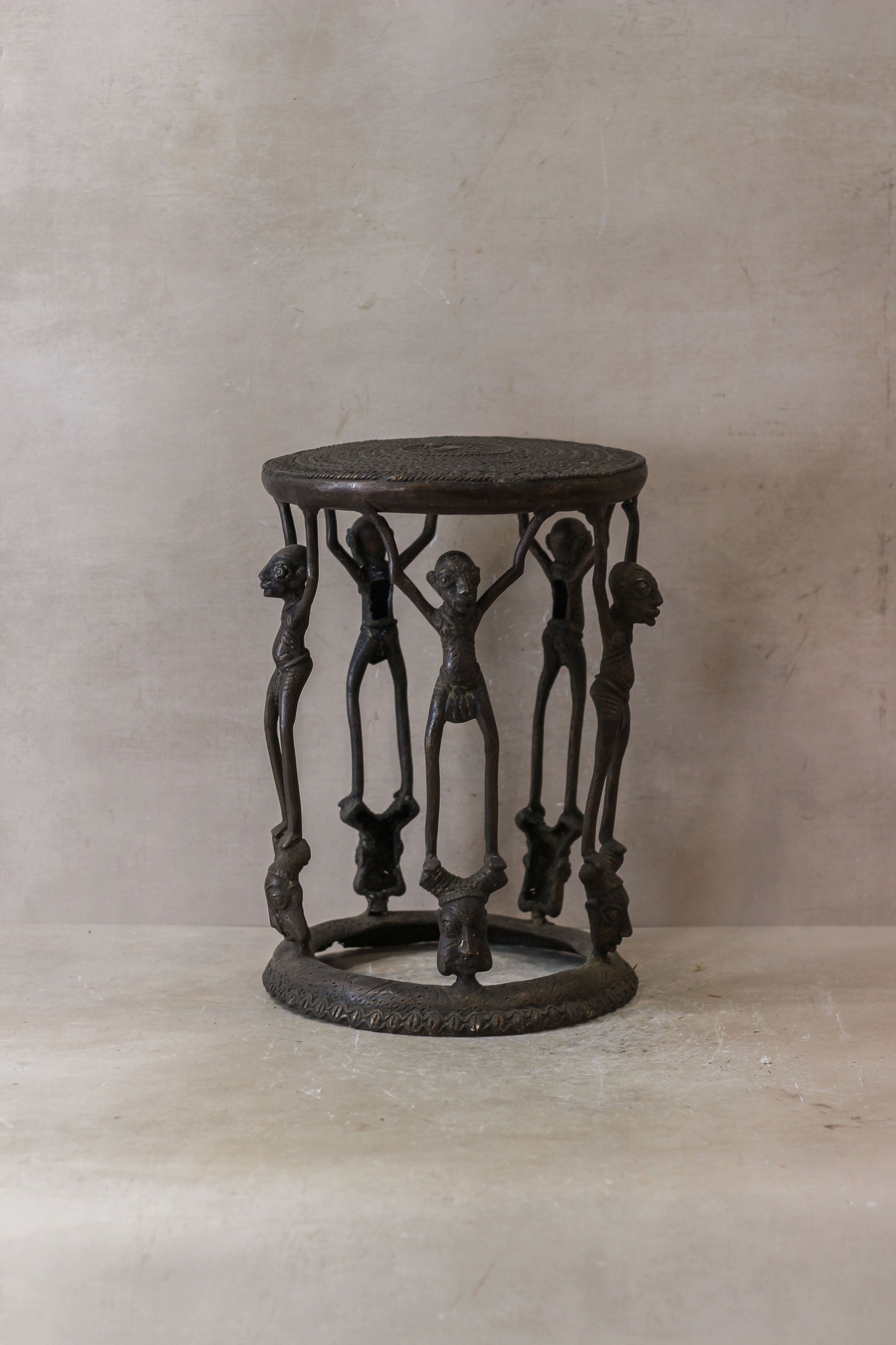 Supported by elegantly crafted legs, the Benin bronze table not only serves as a functional piece of furniture but also as a work of art that exudes historical and cultural significance. These tables are cherished for their cultural and artistic value, making them sought-after pieces.