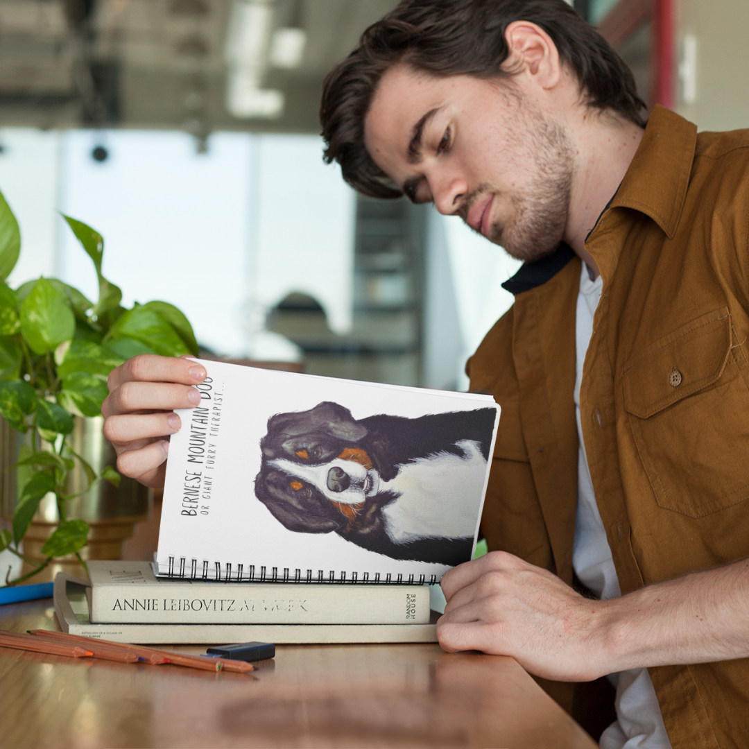 Need a giant furry therapist to help you jot down thoughts, dreams, or reminders to buy more dog treats? This fabric-covered notebook featuring the Bernese Mountain Dog is the perfect companion for all your writing adventures! Whether you're penning a novel, making to-do lists, or doodling your dream dog pack, this notebook delivers big Berner energy without the drool. Soft, stylish, and paws-itively adorable!