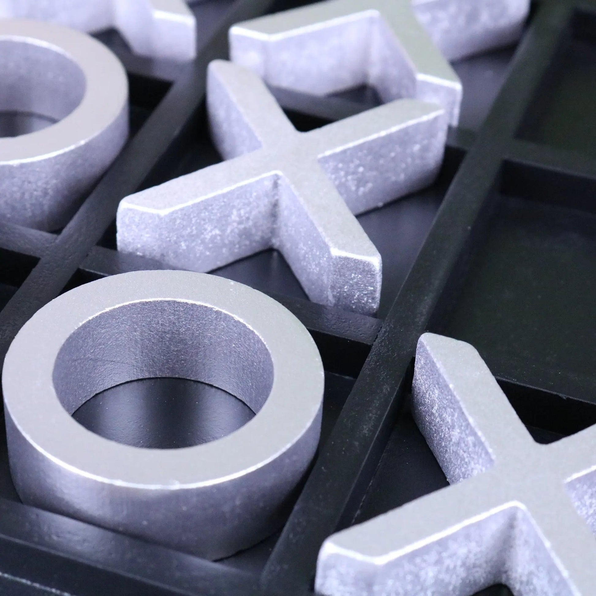 Each X and O piece is weighty, tactile, and satisfying to handle, making every match feel more engaging. When the game is not in use, the contrasting textures of polished silver and dark wood allow the set to double as a decorative accessory—perfect for styling a coffee table, sideboard, or home office.
