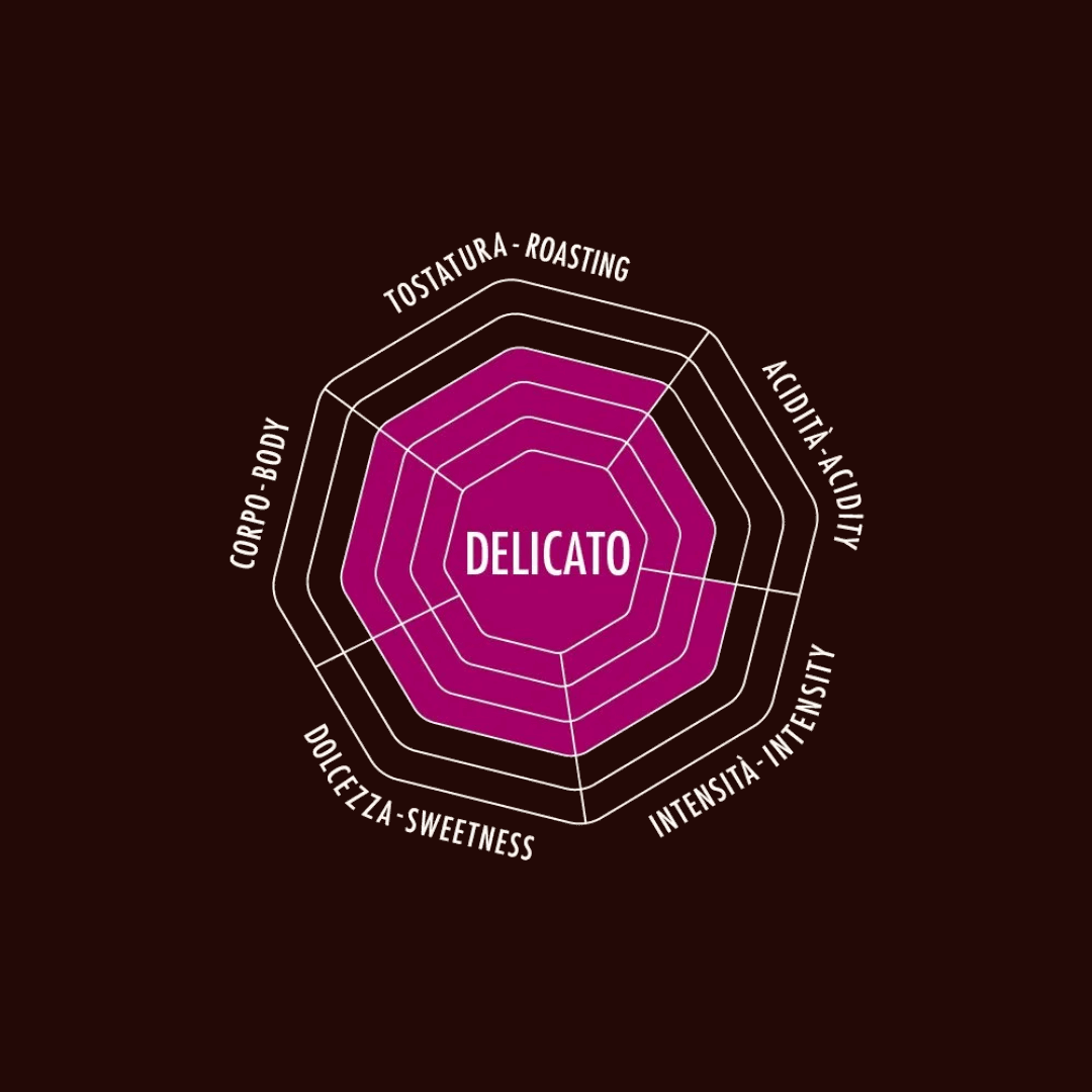 Experience the gentle sophistication of Bialetti Delicato, a refined 100% Arabica Italian coffee blend. Masterfully light-roasted to preserve delicate floral notes and sweet dried fruit undertones, this smooth coffee delivers rich aroma without intense bitterness. Perfect for multiple cups throughout the day, Delicato shines as both an espresso or Americano, offering a truly elegant Italian coffee experience.