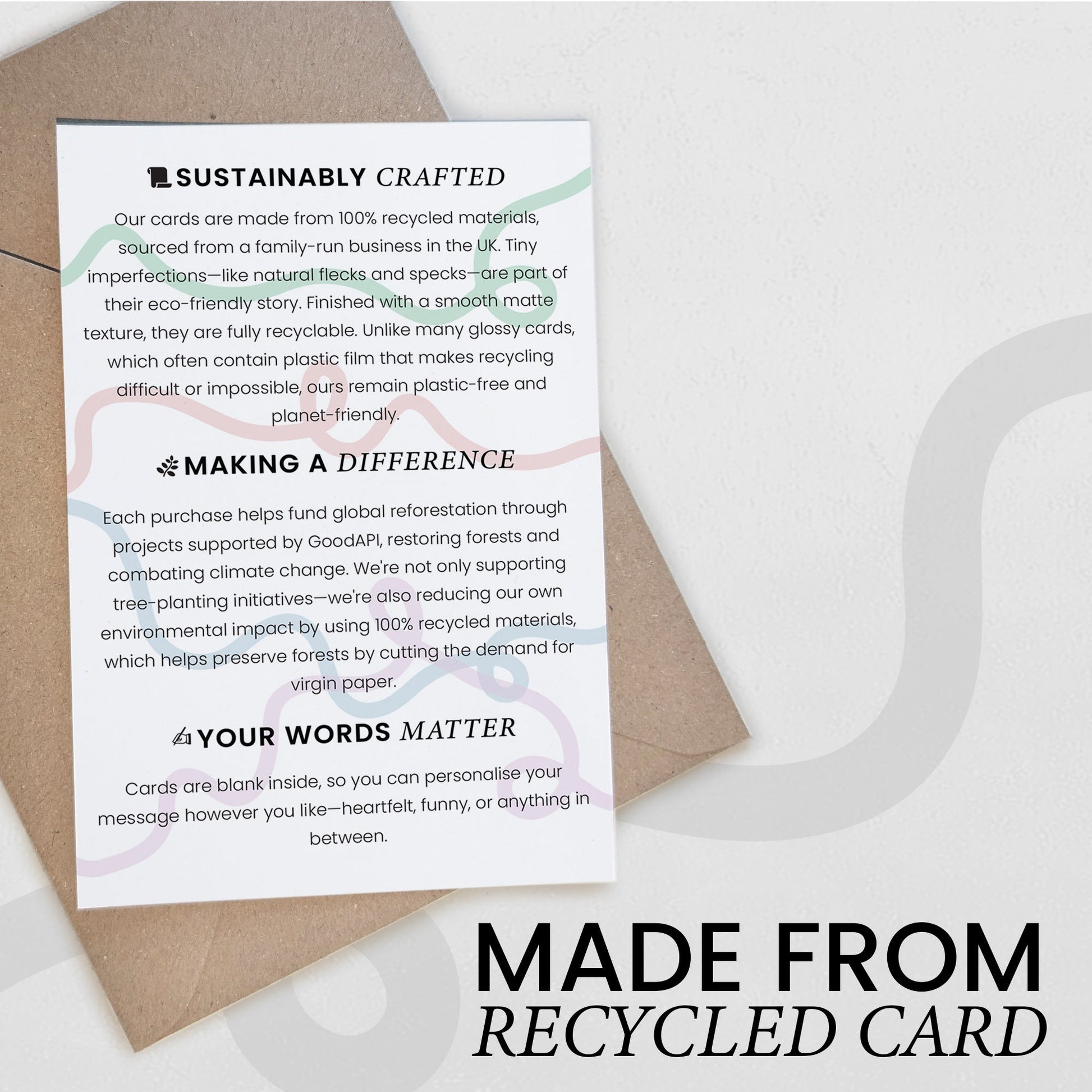 Support Reforestation: With every order, we contribute to tree planting initiatives through Sprout and the Eden Reforestation Projects. Choosing our cards helps replenish the planet's forests, making your celebration part of a larger global impact.