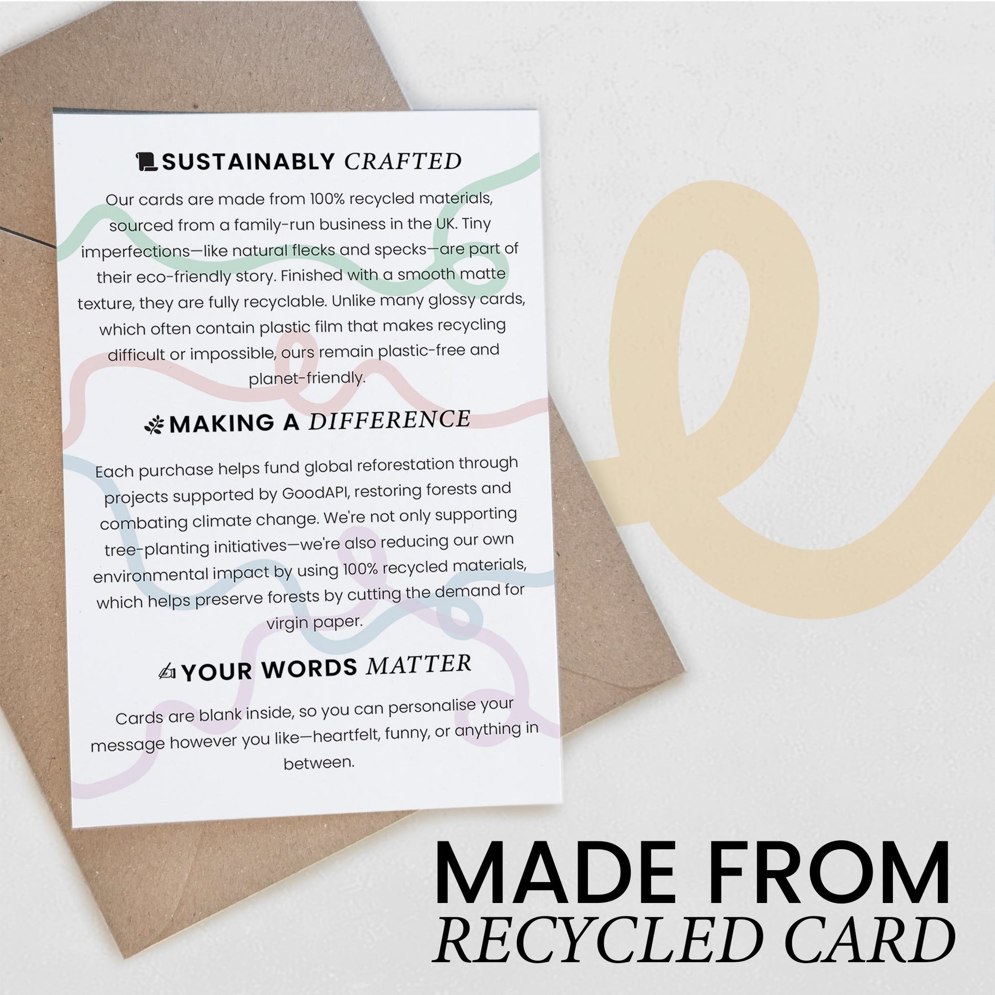 Sustainable and Stylish: Embrace sustainability with our 100% recycled 300gsm card stock. Each card may feature unique specks or dots, celebrating the beauty of recycled materials. These are not defects but rather signatures of eco-conscious craftsmanship.