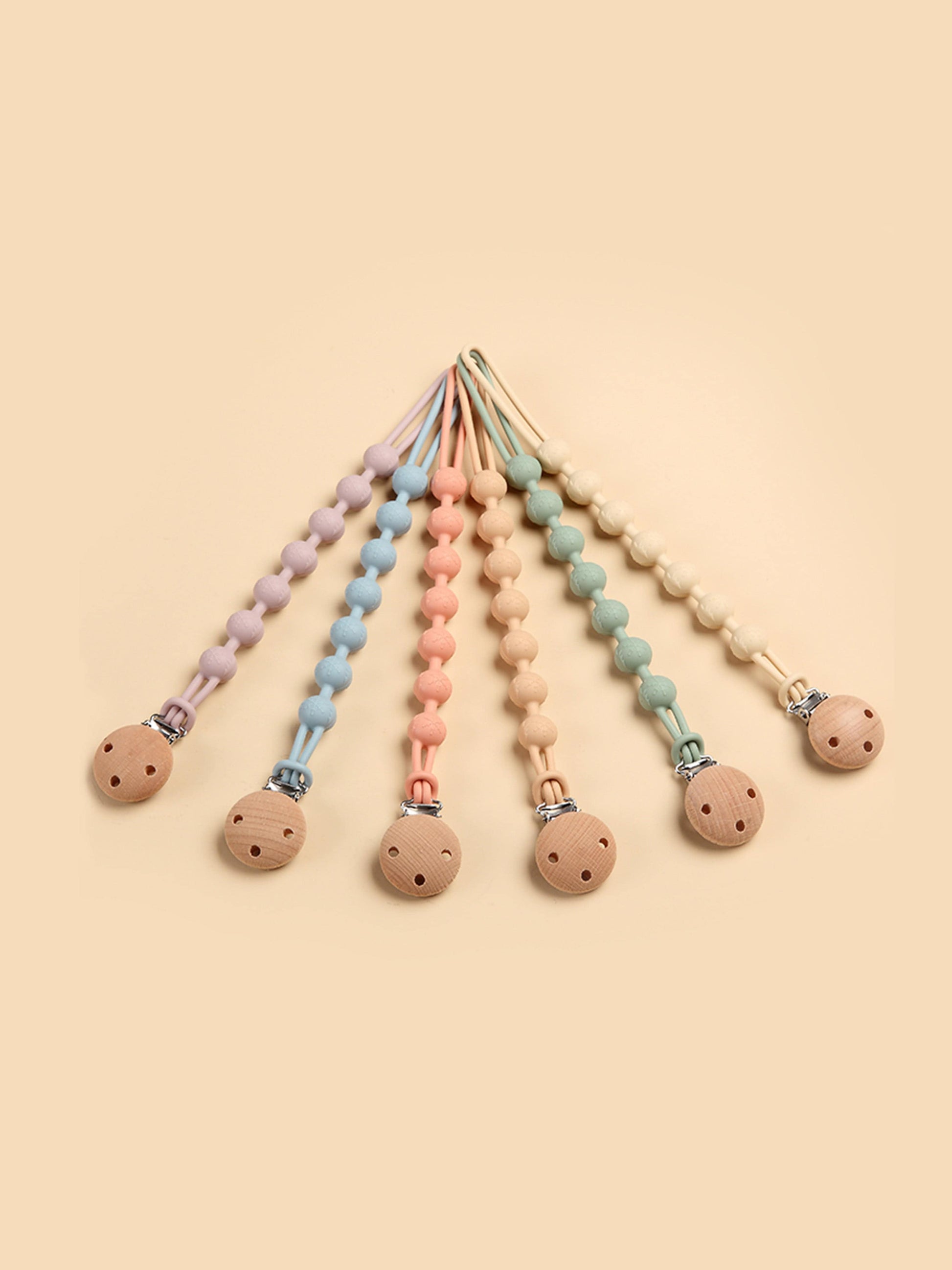Bloom Bambini incorporate eco-friendly materials into their beautifully crafted baby aesthetics. This baby pacifier clip and teether in peach is perfect for your little one. Crafted in organic material with stainless steel and refined innovation. They will be obsessed.