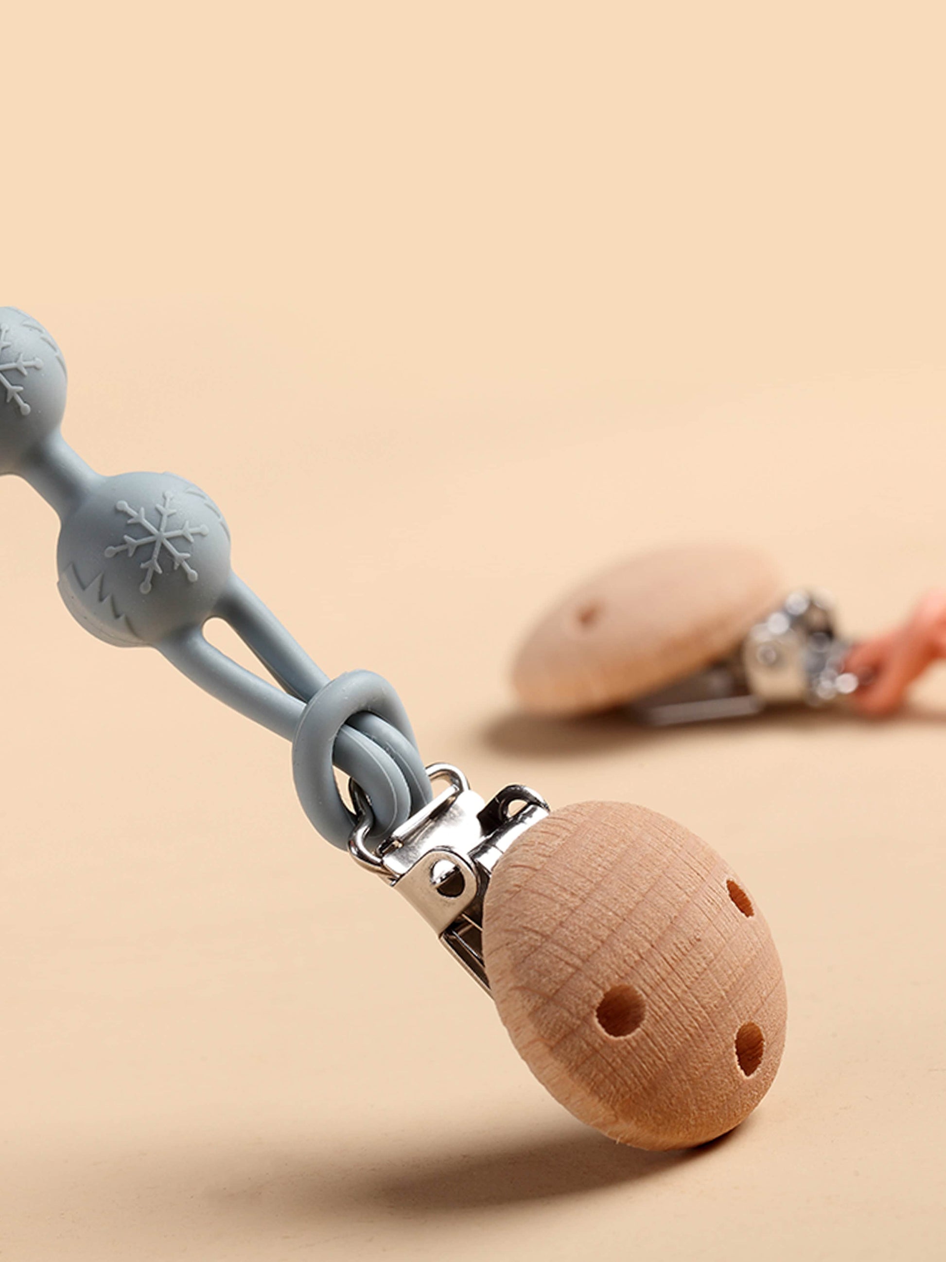 Bloom Bambini incorporate eco-friendly materials into their beautifully crafted baby aesthetics. This baby pacifier clip and teether in purple is perfect for your little one. Crafted in organic material with stainless steel and refined innovation. They will be obsessed.