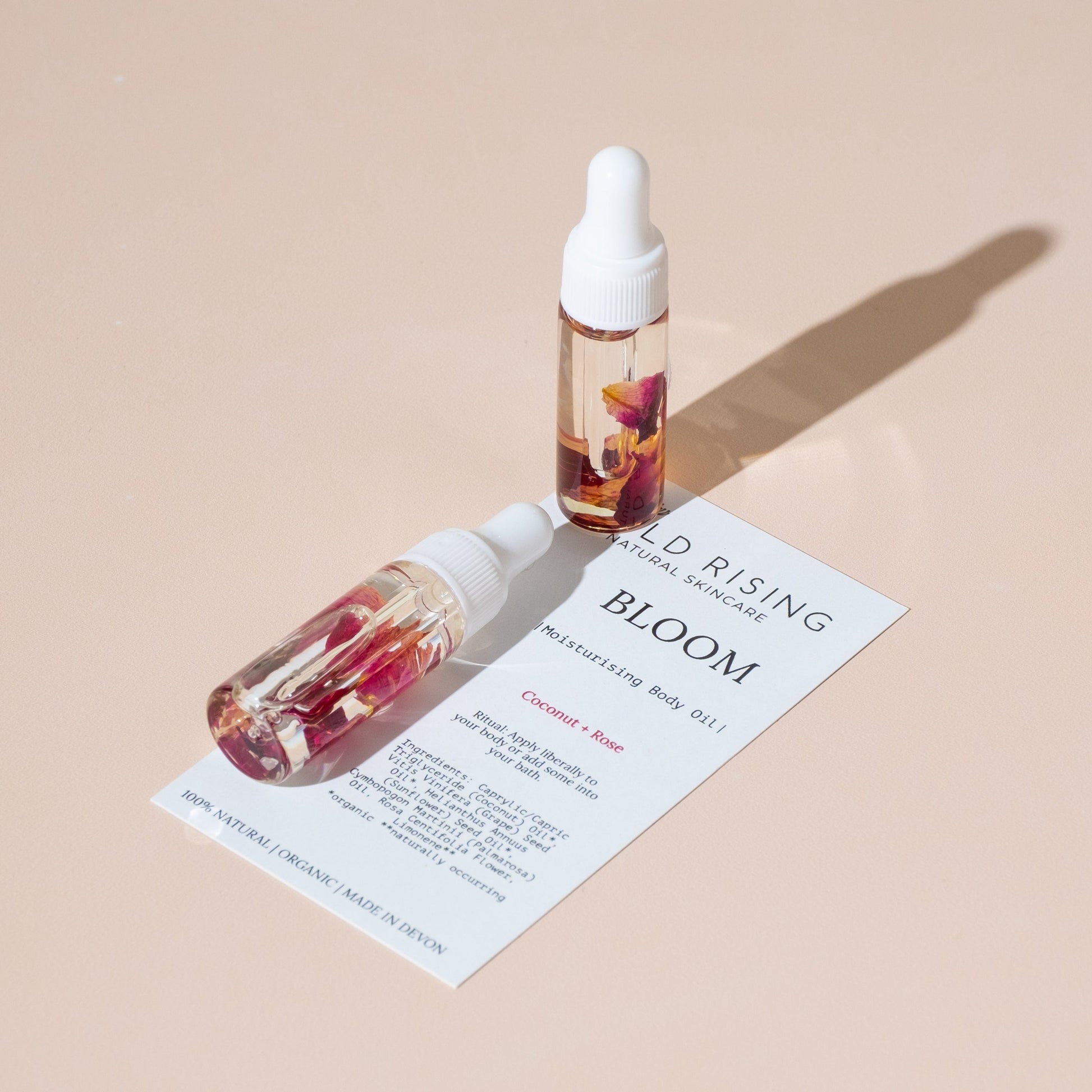 This travel-size, natural skincare mini does just that. They may look small, but our Bloom Body Oil skincare mini will give you at least a one month supply of botanical, skin-loving power.