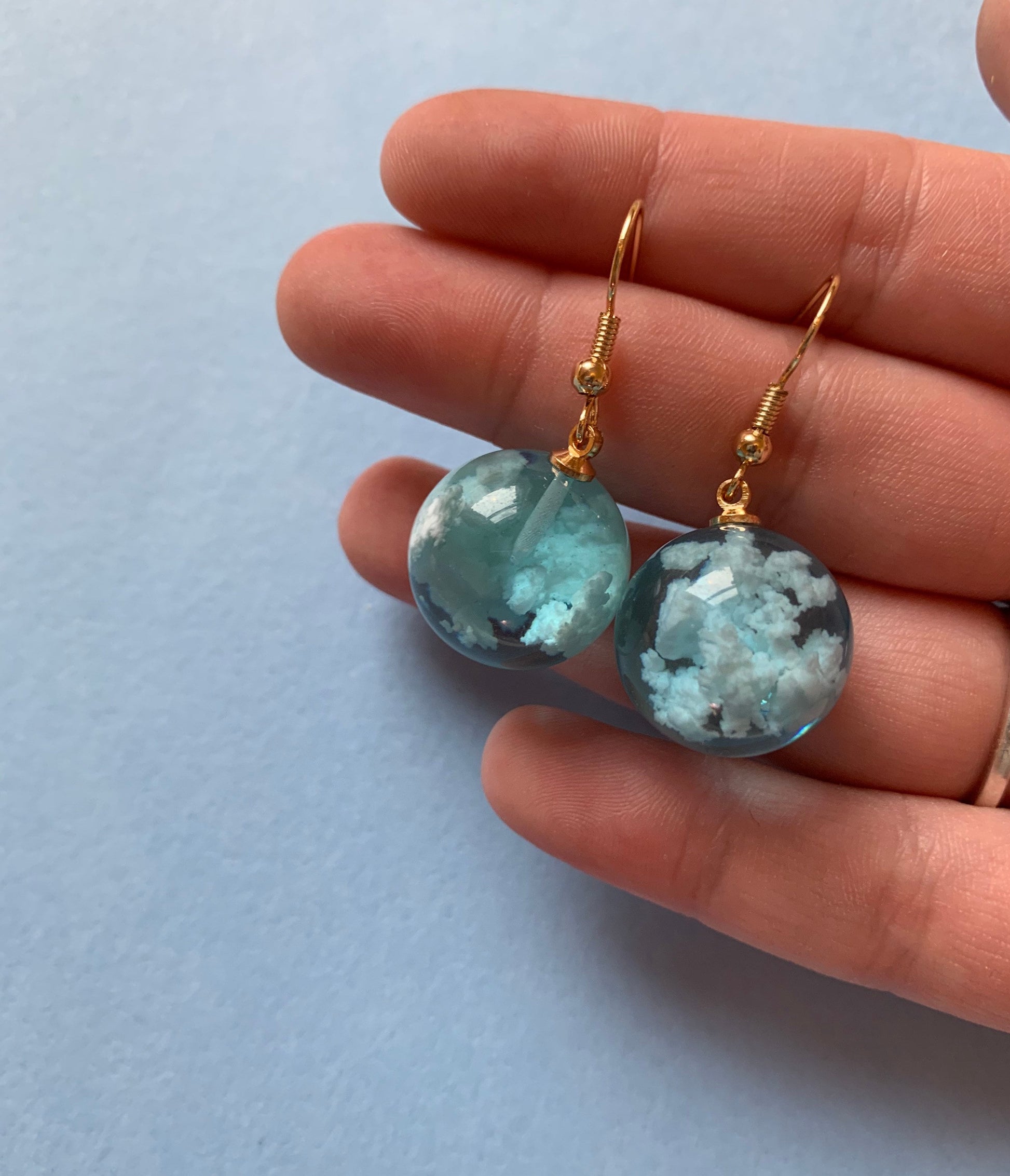 Blue cloud sky sphere earrings
