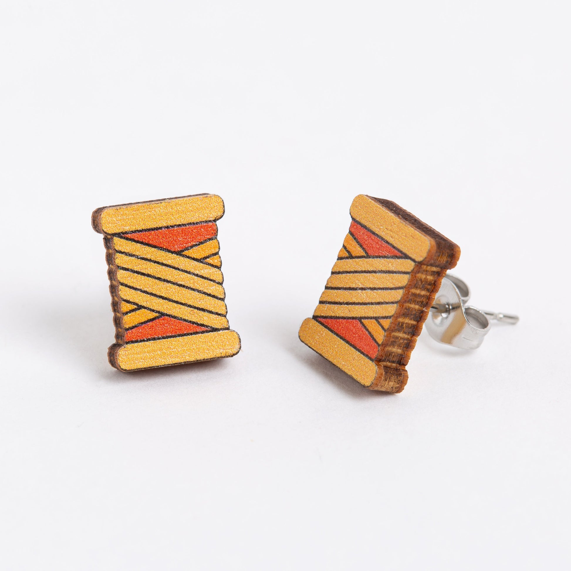 Show off your crafty side with our ardorable Bobbin wooden stud earrings!