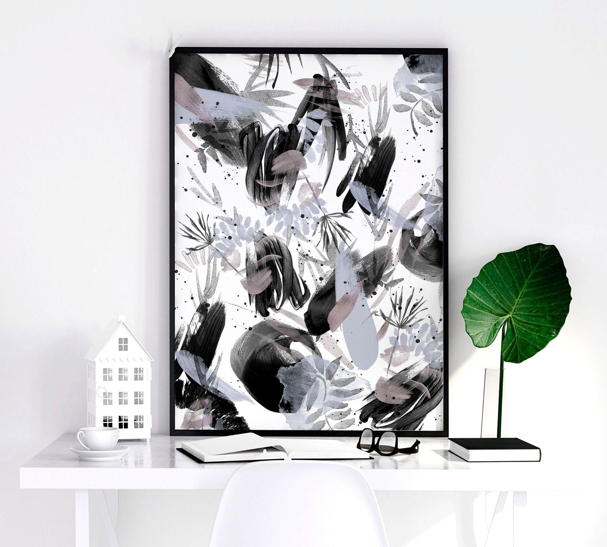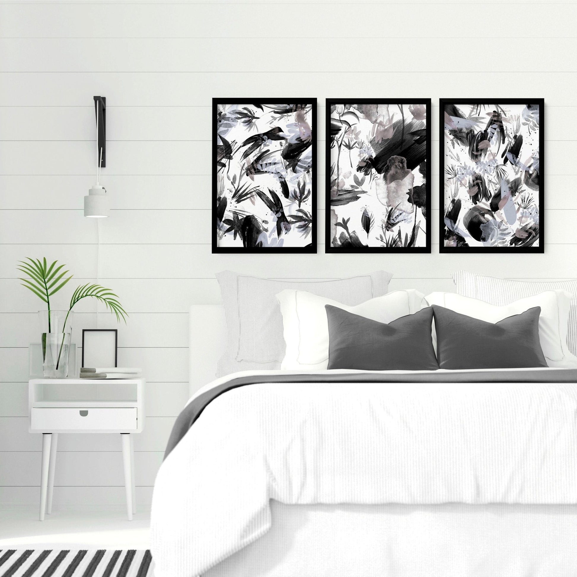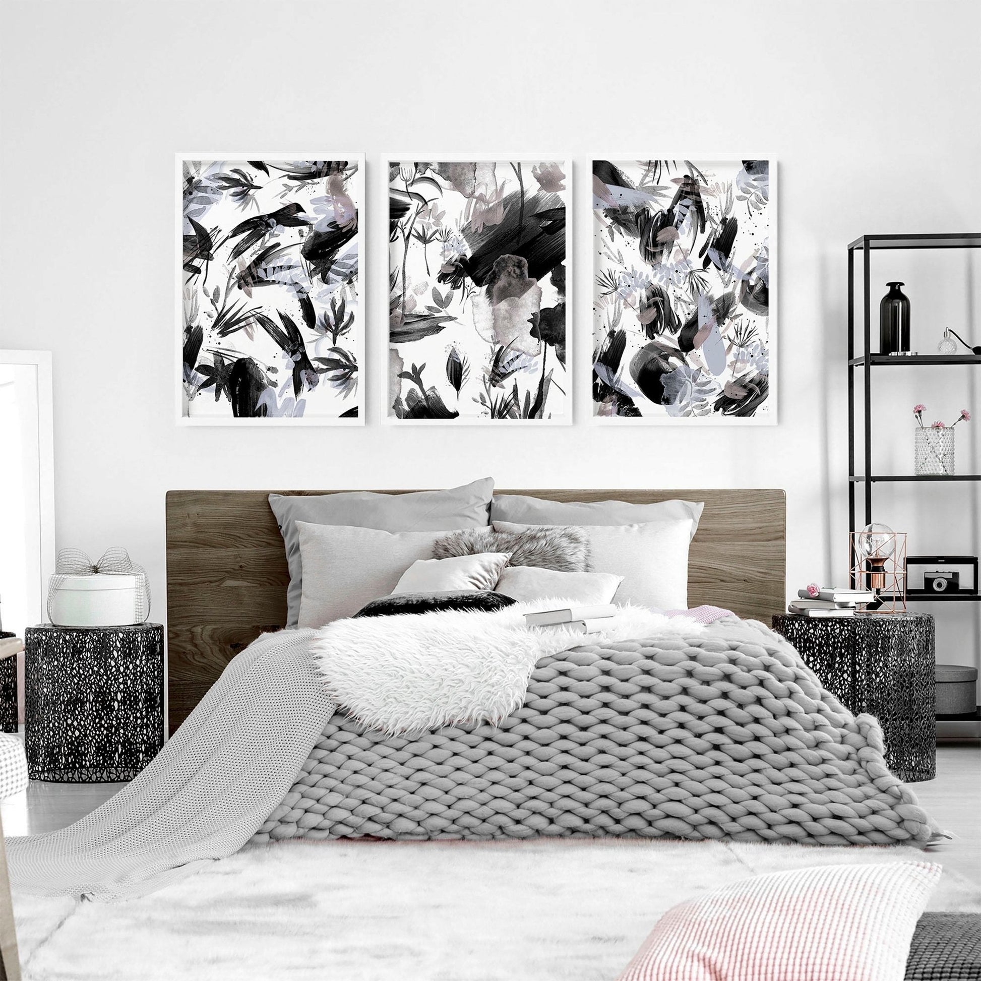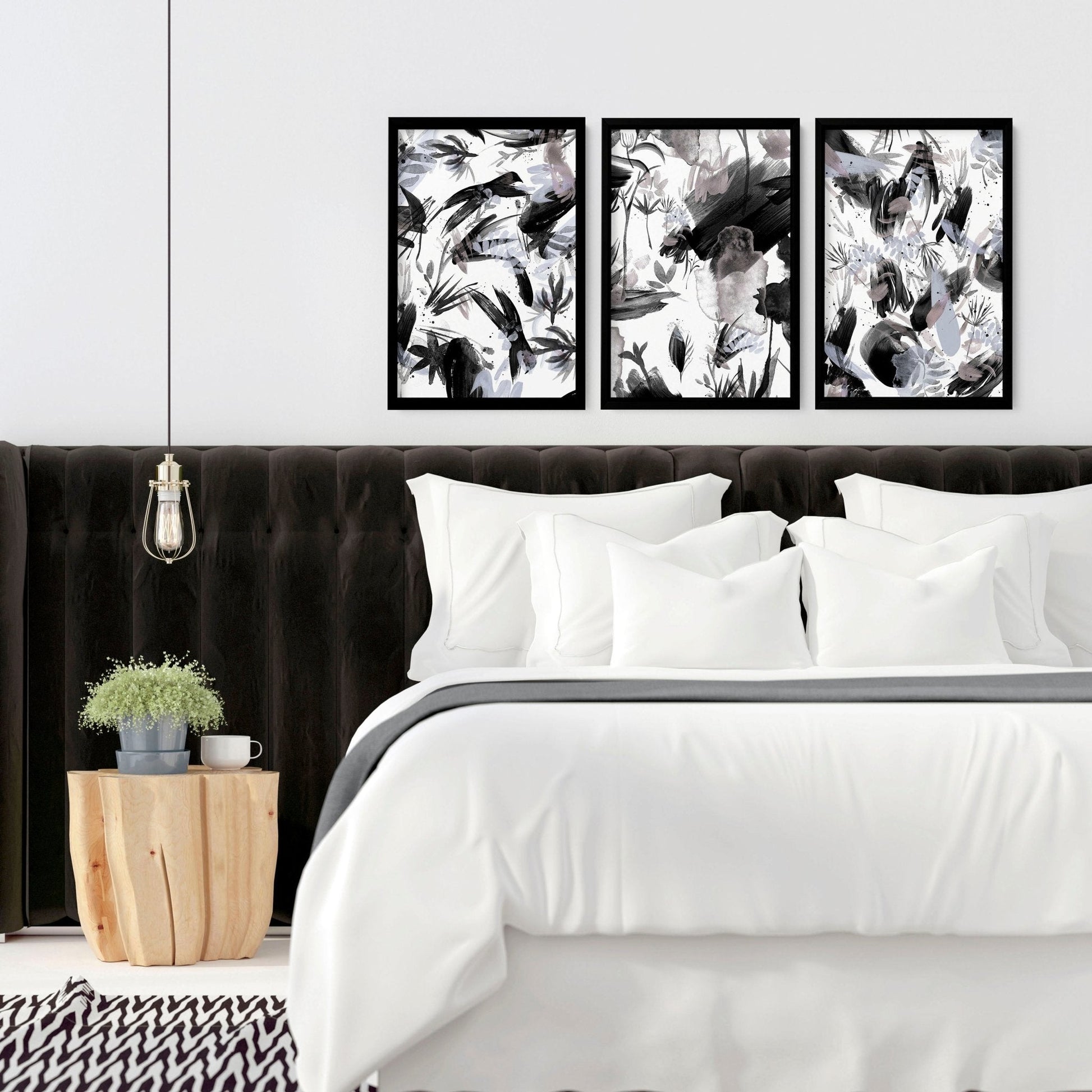 Order your set of three wall art prints featuring black and white abstract nature brushstrokes today and let Bohemian maximalist decor turn your bedroom into a haven of creativity and style.