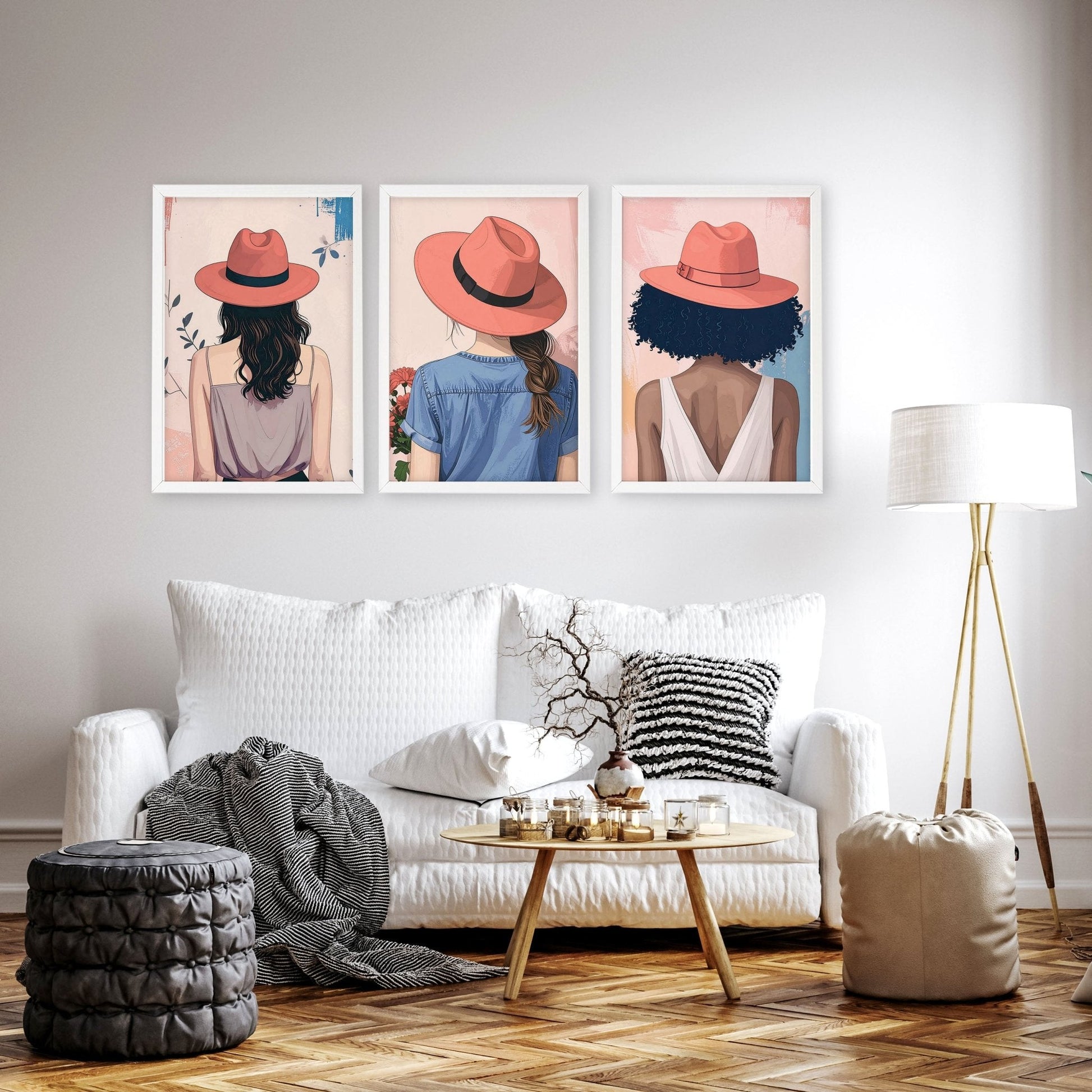 You will receive a Set of 3 Boho Women Wall Art Prints for your living room.