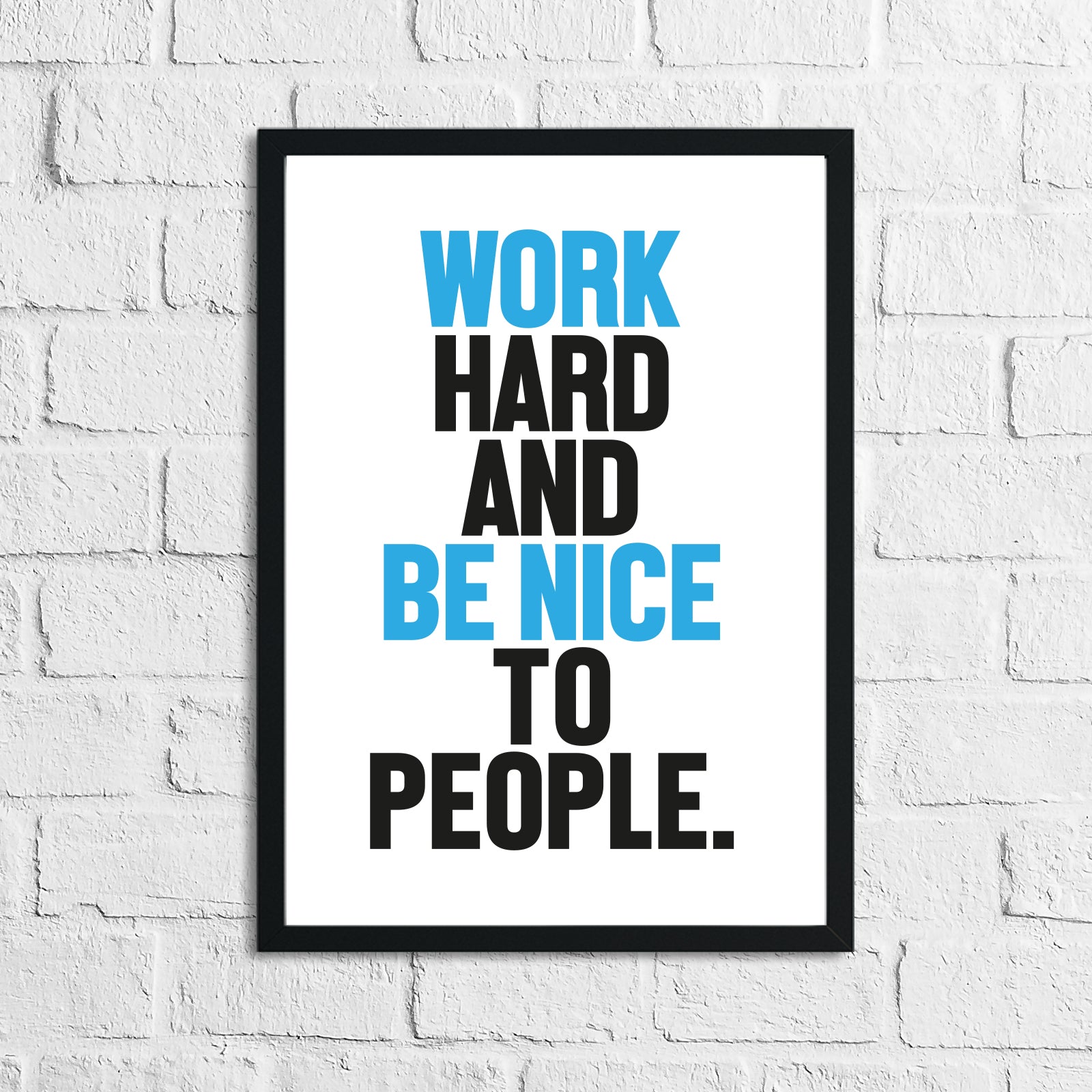 Bold Colour Work Hard And Be Nice To People Inspirational Simple Wall Home Decor Print