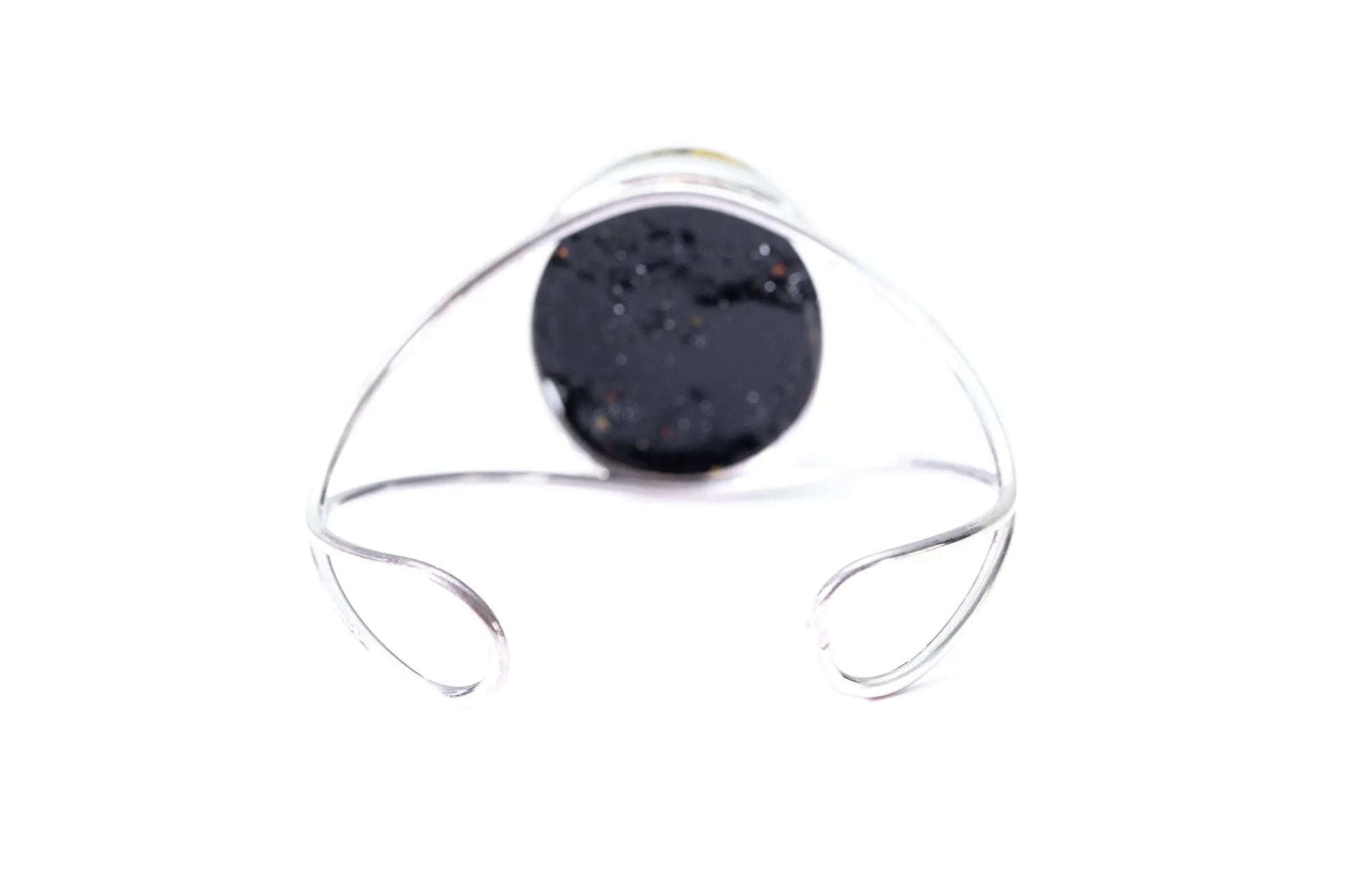 Bold yet simple, big and beautiful. This Statement Bangle features a sleek and thin cuff, with a huge round Baltic Amber piece, set within a simple sterling silver mount.