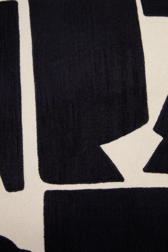 The natural and black palette delivers instant sophistication, grounding colourful rooms and energising neutral schemes. Embroidered detailing outlines the pattern with gentle relief, adding tactility that feels premium under hand.