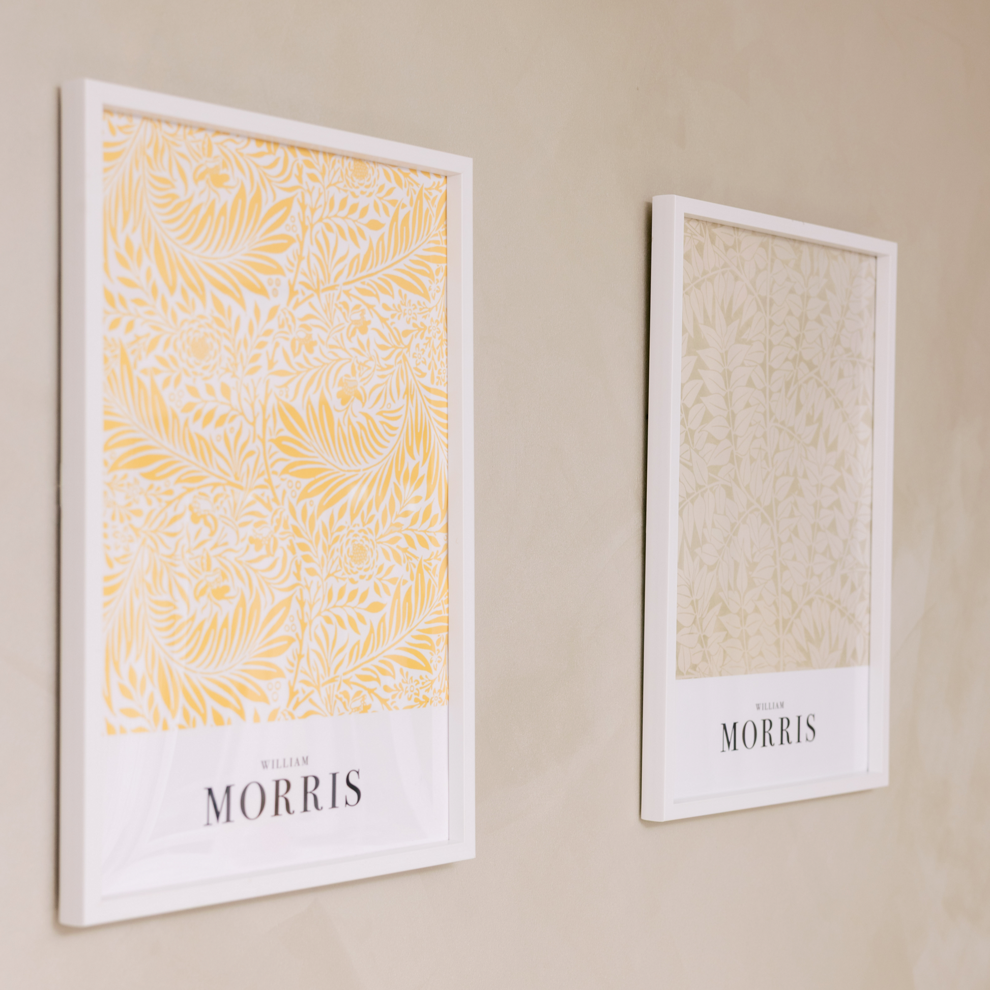 The William Morris Branch Print celebrates the organic beauty of nature with its detailed, intertwining branches. Featuring soft, natural hues and a balanced, rhythmic design, it brings a serene and calming atmosphere to any room. This print is a perfect fusion of classic craftsmanship and contemporary style, making it a versatile addition to both modern and traditional interiors.