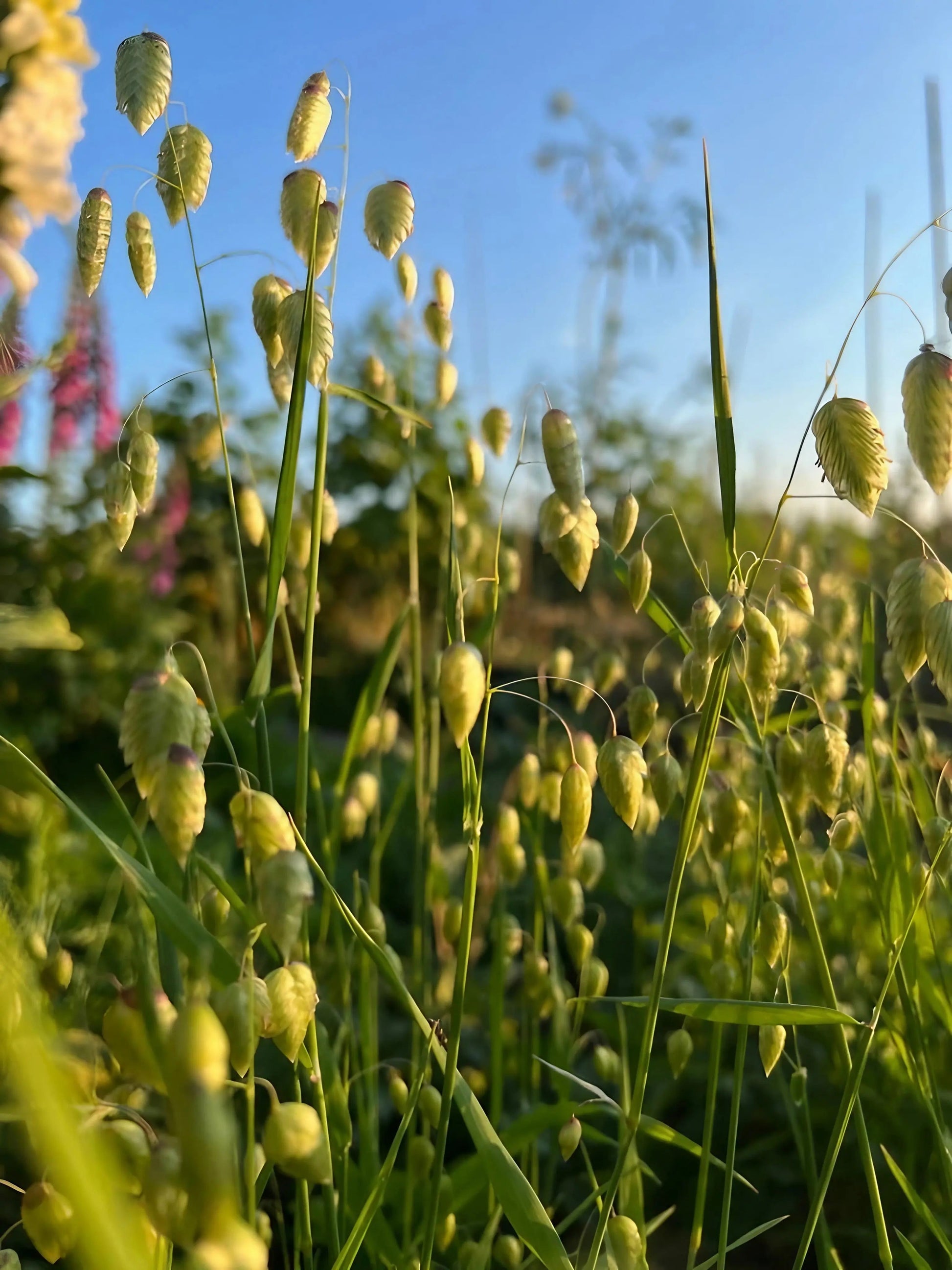 These "lockets" are suspended on tiny, hair-like pedicels that allow them to tremble and dance in the slightest breeze, creating a gentle, rustling sound that mimics falling rain. As the season progresses, the heads ripen from silvery-green to a warm, golden biscuit colour. It is a must-have for dried flower arrangers, adding texture, movement, and a touch of whimsy to any display.
