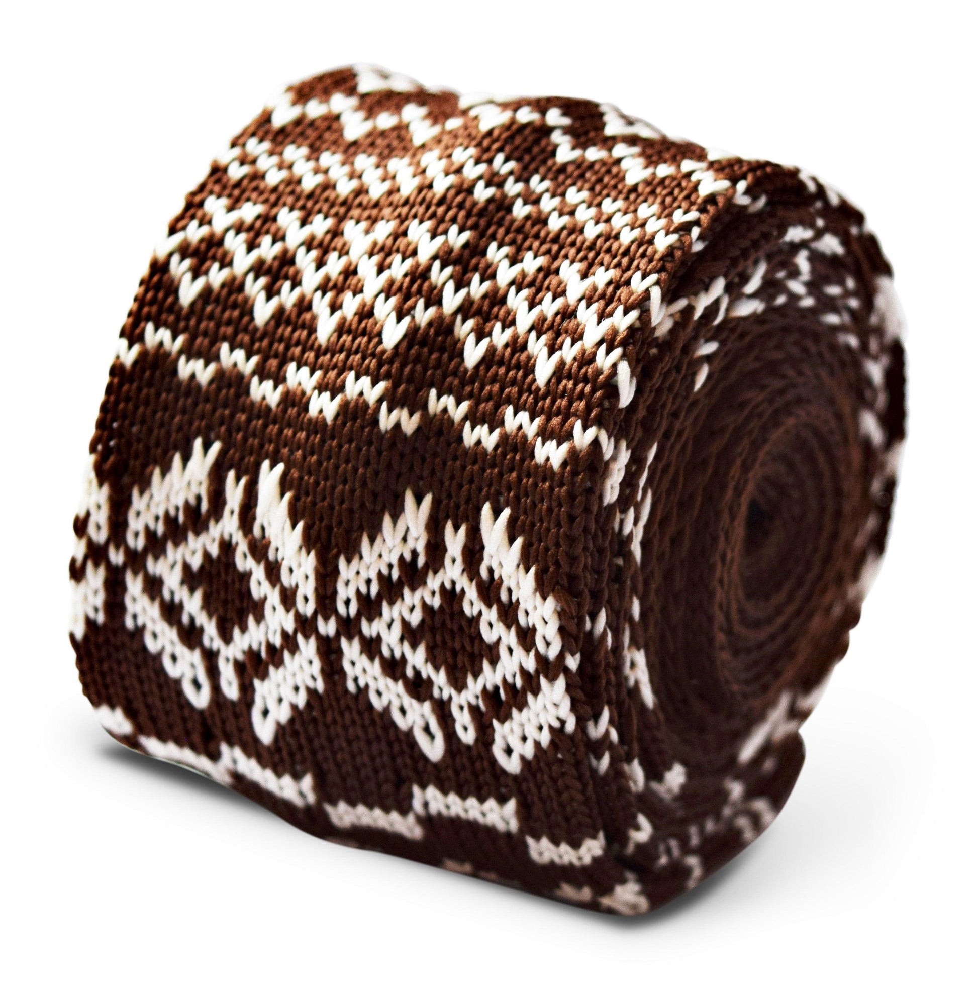 brown and white with christmas jumper design knitted skinny tie