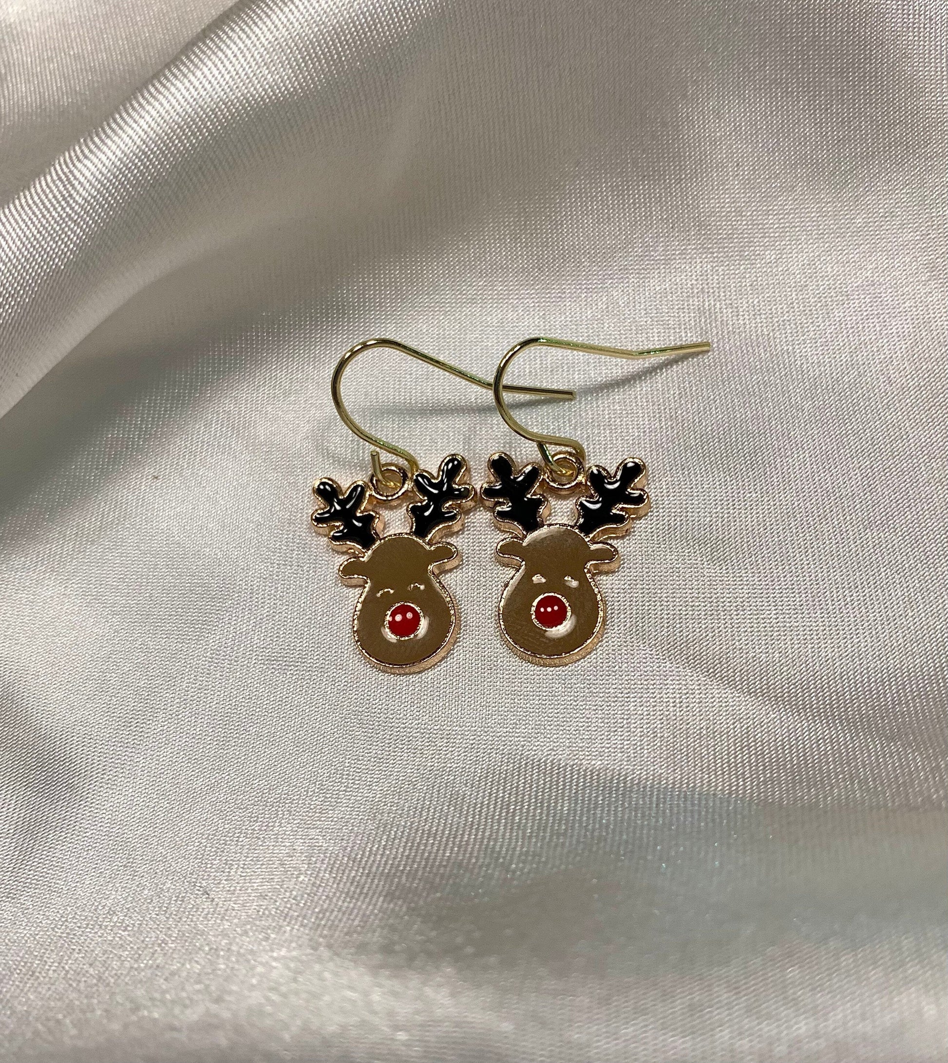 An adorable pair of reindeer Christmas earrings. These earrings are on a 18k gold plated hook.