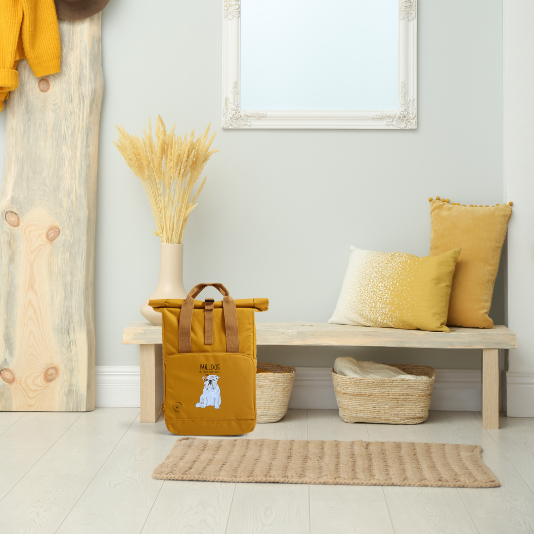 Meet the backpack as sturdy and lovable as a bulldog! Ethically produced and designed for durability, this high-end bag features the unmistakable face of the furry road drill—aka the bulldog. With plenty of room for your daily essentials (and emergency snacks), this pack is built for adventure, whether you're conquering the commute or heading out for a long walkies. Style, sustainability, and snorts all in one!