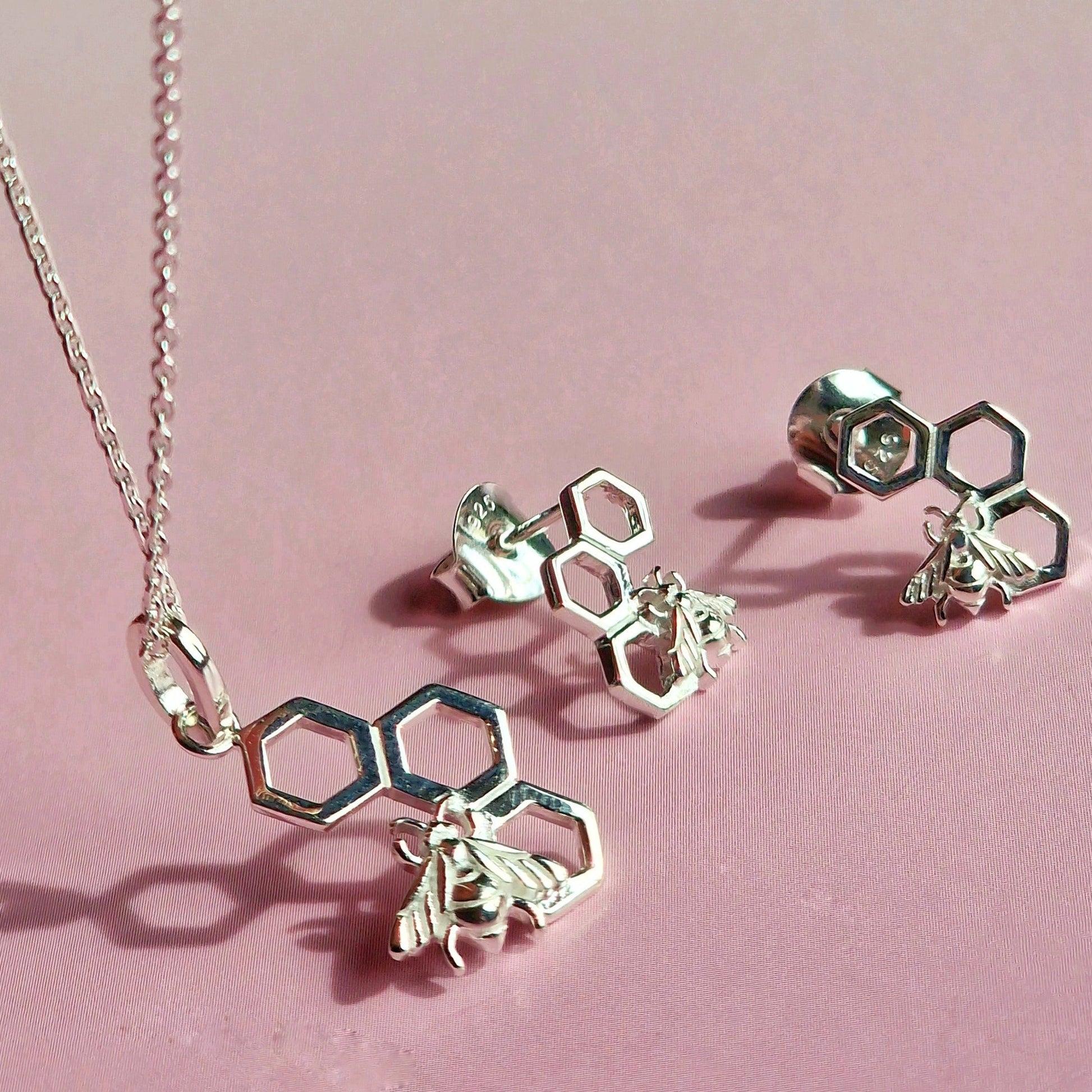 Indulge in the natural beauty of the British countryside with our Bumble Bee Honeycomb Sterling Silver Necklace! Hand-crafted with intricate details, this necklace is a timeless addition to your wardrobe. Embrace the charm of nature and elevate your style with this stunning piece.