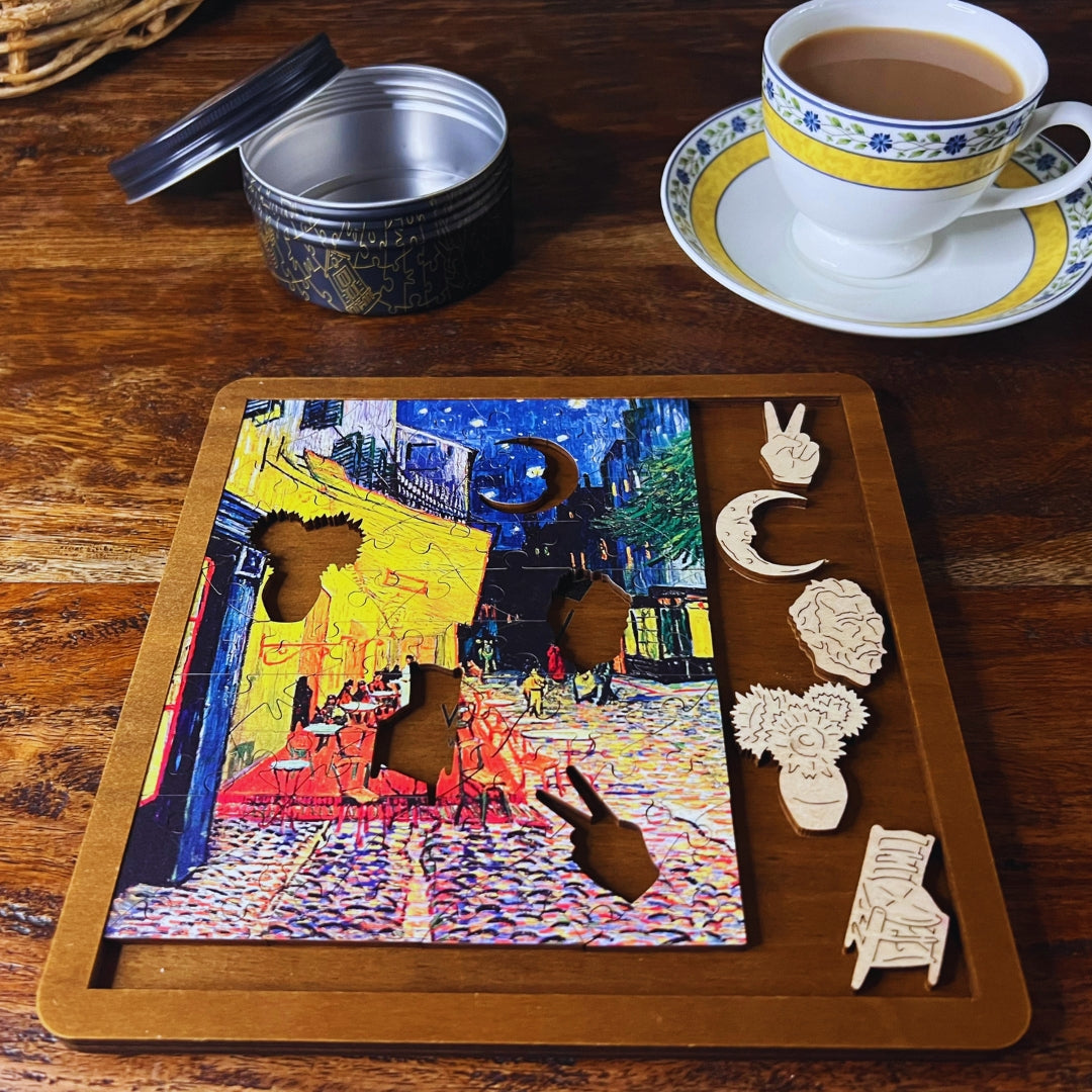 Our MINI QT puzzles are laser cut from thick, 4mm plywood and include 5 whimsies - they make a great puzzle snack!
