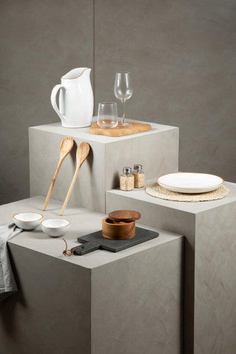 Carefully crafted from natural terracotta, the white glazing gives the bowls a smooth finish which helps to accentuate their shape. A beautiful white finish with natural terracotta trim will complement most decors, adding a freshness to your table. A wonderful addition for everyday dining, the set of 2 Calisto mini bowls will bring a touch of chic to the occasion.