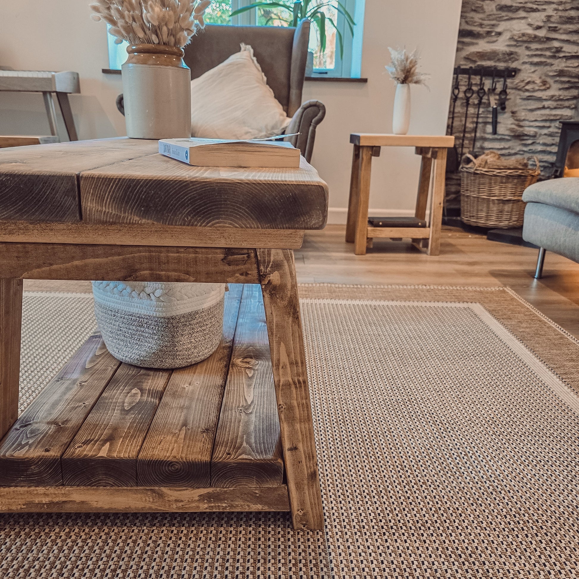 CARA Rustic Wooden Coffee Table With Shelf