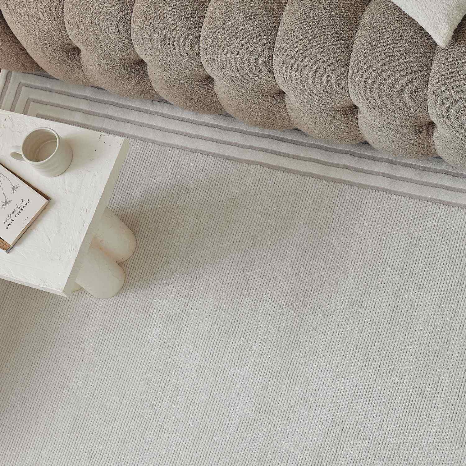 Bring subtle sophistication to your home with the Carmel Cream Bordered Rug. Its clean border design in soft cream tones adds a refined, modern touch while maintaining a warm and inviting atmosphere.