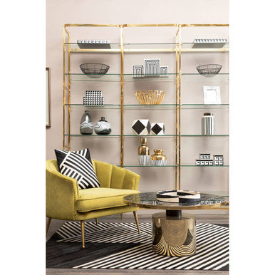 Orsina brings gallery-level presence to everyday spaces with the Cassia large ceramic vase. A bold lower half of black and white vertical stripes is balanced by a rich gold top, creating a refined contrast that suits modern rooms.