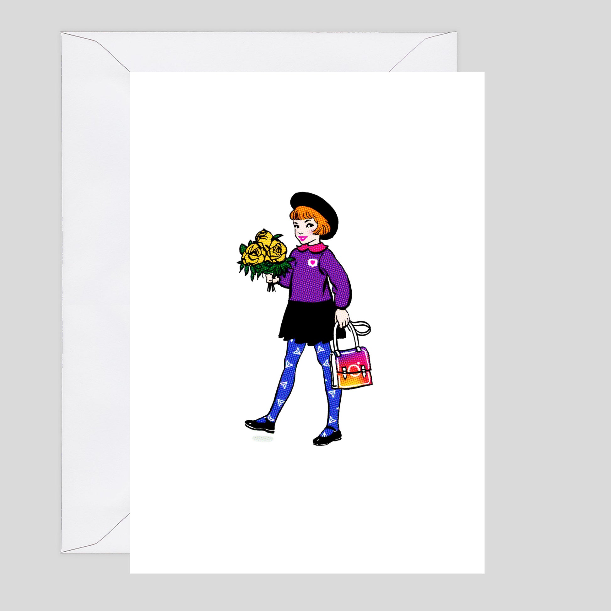 Ceal Warnants' greetings cards play on quaint British illustration pastiches, mixing them up with darkly comic modern insignia, from Nikes to the middle finger.
