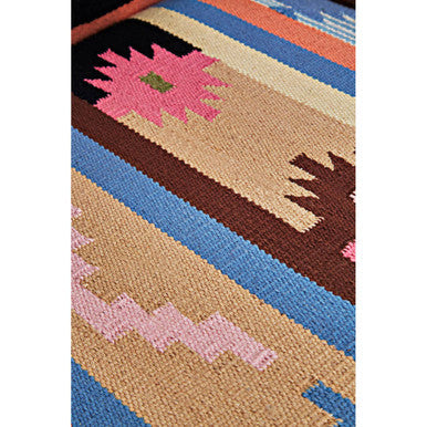 This rich multicoloured fabric chair, along with the comfy seating and backrest, makes it a statement piece. The mango wood frame supports its structure and increases its durability.