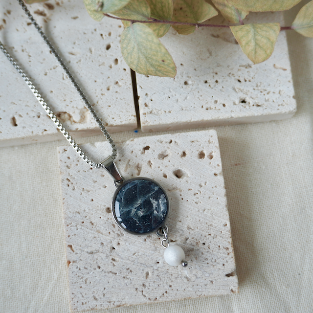 The creative process to craft the unique colour and stone like effect involves a mixture of translucent polymer clay, combined with an array of inks and metal leaf in such a way that achieves a one-of-a-kind finish. To complete the process, it is topped with a transparent resin to really highlight the colour and sparkle!