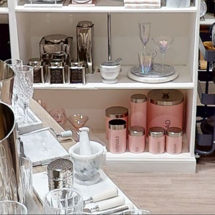 The Chai stainless steel pasta canister features elegant engraved pasta label. Delicate floral motifs adorn the square canister, adding a touch of elegance and matching lid ensures freshness of the contents for longer.