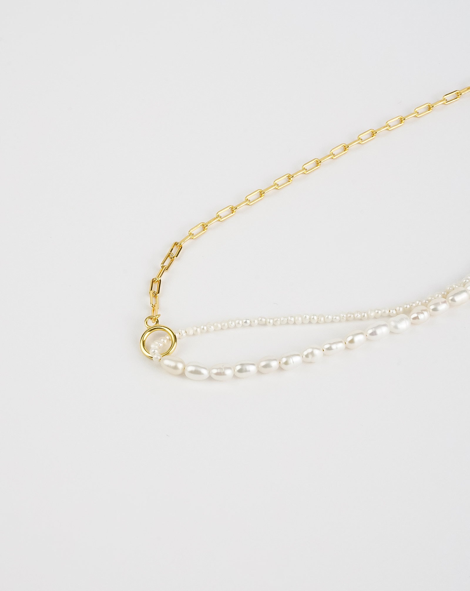 Elevate your look with the sophistication of our Chain Link Pearl Necklace. Delicately crafted with carefully chosen pearls, this piece adds a touch of elegance to any outfit. The intertwining chain links symbolise the interconnectedness of beauty and grace. Perfect for any occasion.