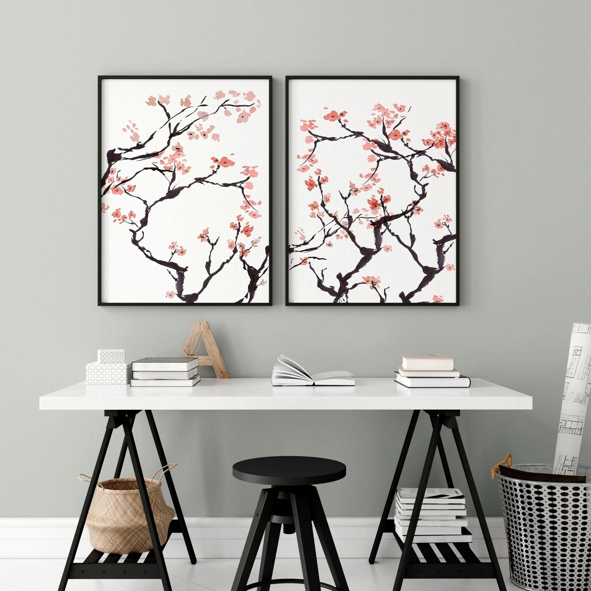Cherry blossom wall art for home office | Set of 2 wall art prints