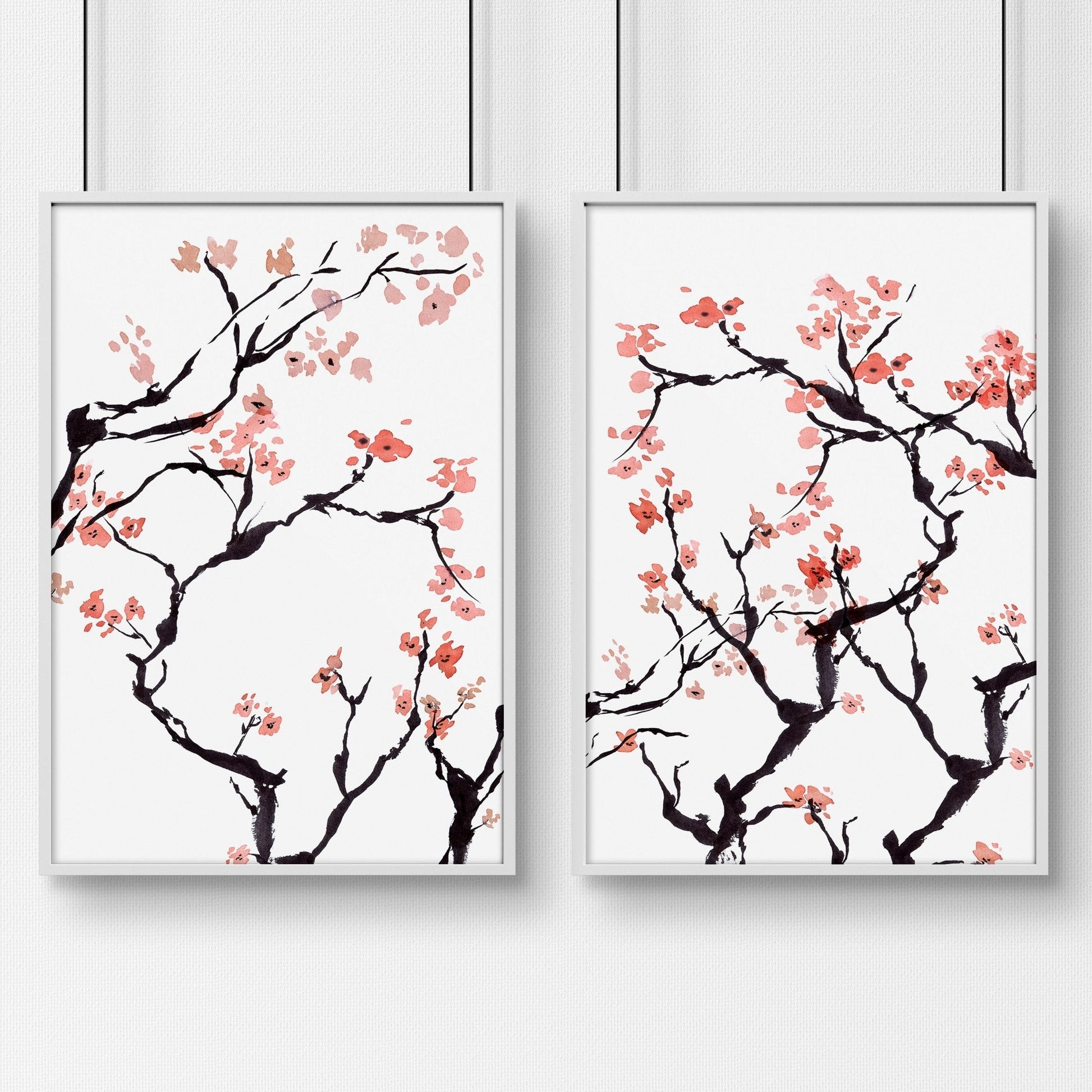 Cherry blossom wall art for home office | Set of 2 wall art prints details:
