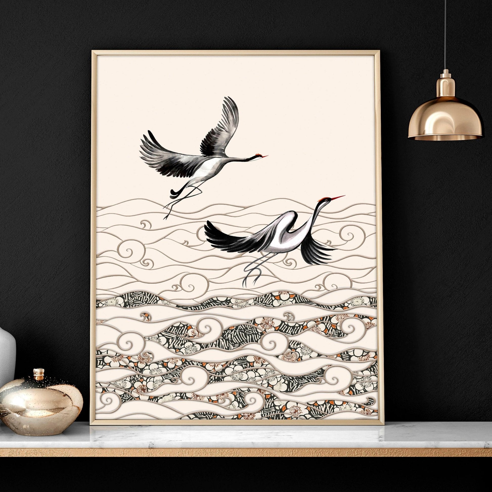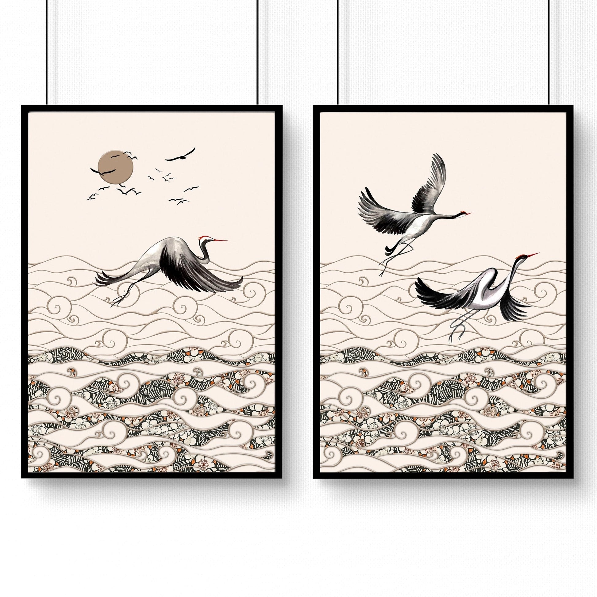 The intricate details of the Traditional Japanese Crane Art and the serene sea landscape bring a touch of elegance and tranquillity to your surroundings. Whether you're looking to infuse your living room, bedroom, or office with a sense of grace and sophistication, these prints are a perfect choice.