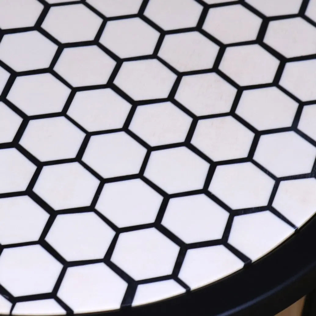 - Unique Resin Tabletops: Each table features a distinctive black and white geometric design, adding a stylish flair to your space.