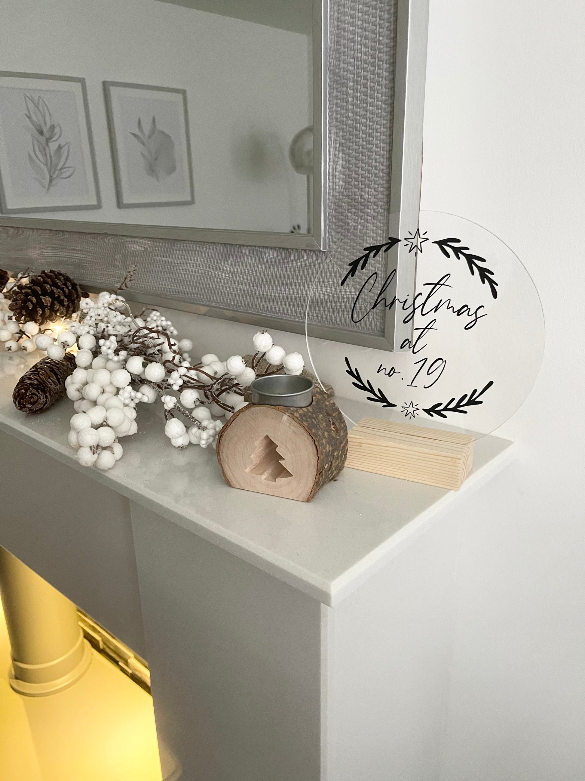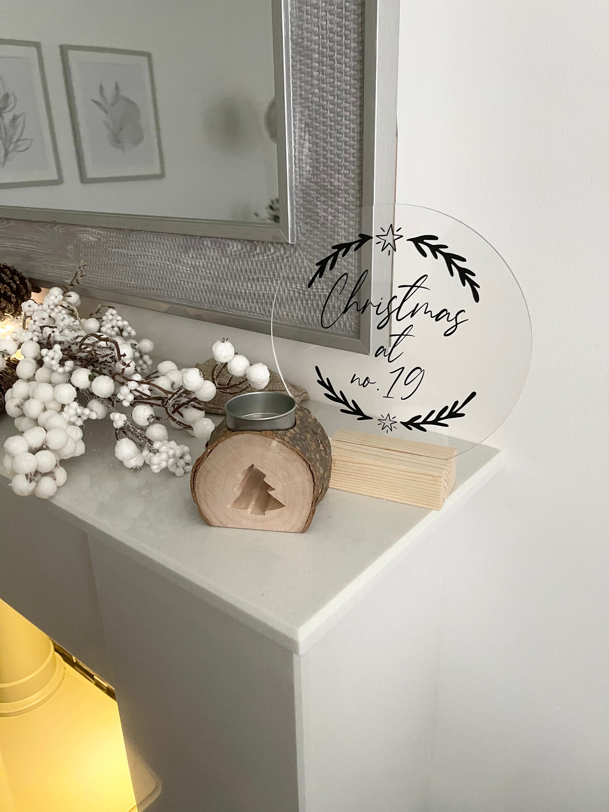 Christmas At House Number Star Wreath Christmas Acrylic Plaque Sign With Wooden Base