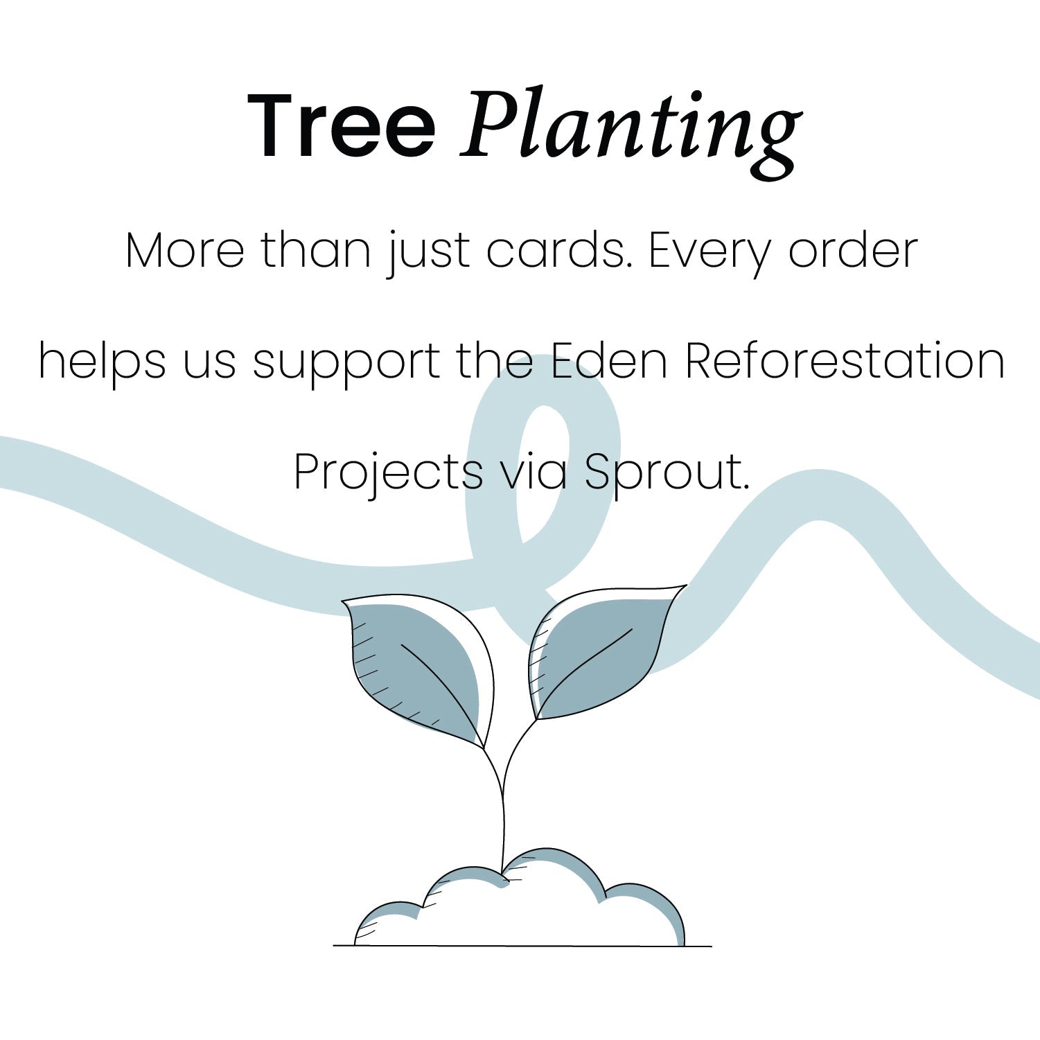 🌱 Support Reforestation: With every order, we contribute to tree planting initiatives through Sprout and the Eden Reforestation Projects. Choosing our cards helps replenish the planet's forests, making your celebration part of a larger global impact.