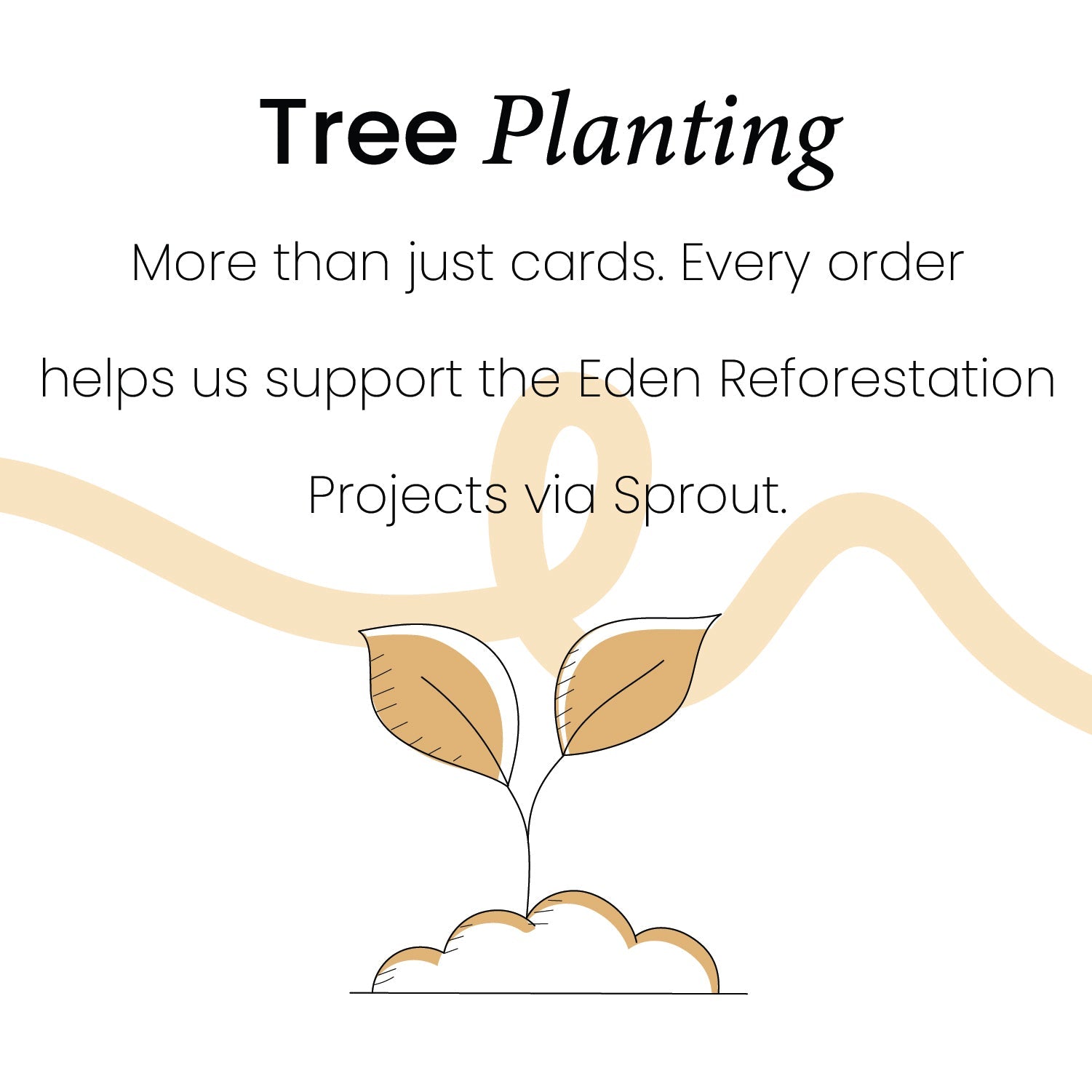 🌱 Support Reforestation: With every order, we contribute to tree planting initiatives through Sprout and the Eden Reforestation Projects. Choosing our cards helps replenish the planet's forests, making your celebration part of a larger global impact.