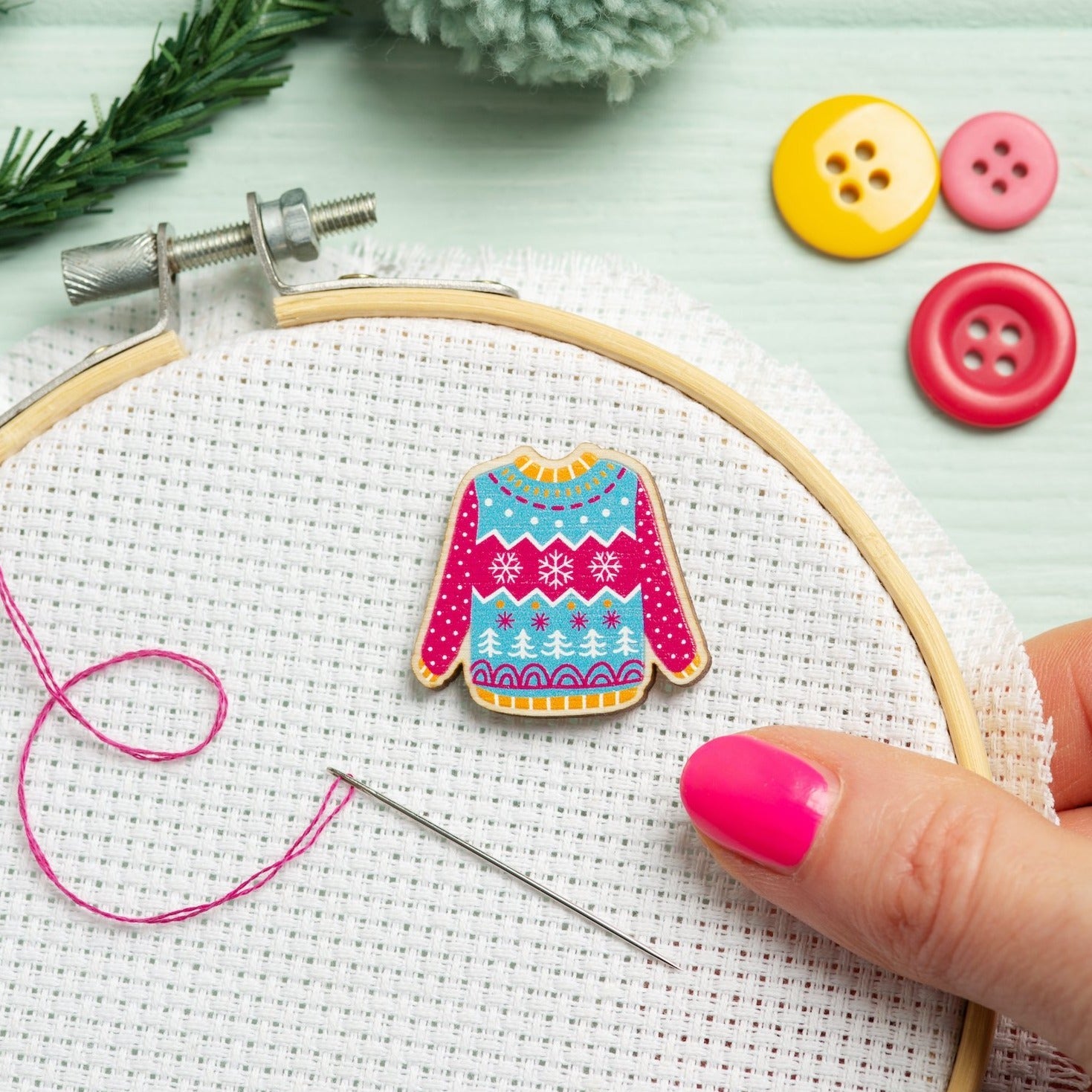 Never lose your needle again! This festive and fun yet practical needle minder is the perfect accessory to your stitching and makes a wonderful gift for an embroidery or cross stitch fan.