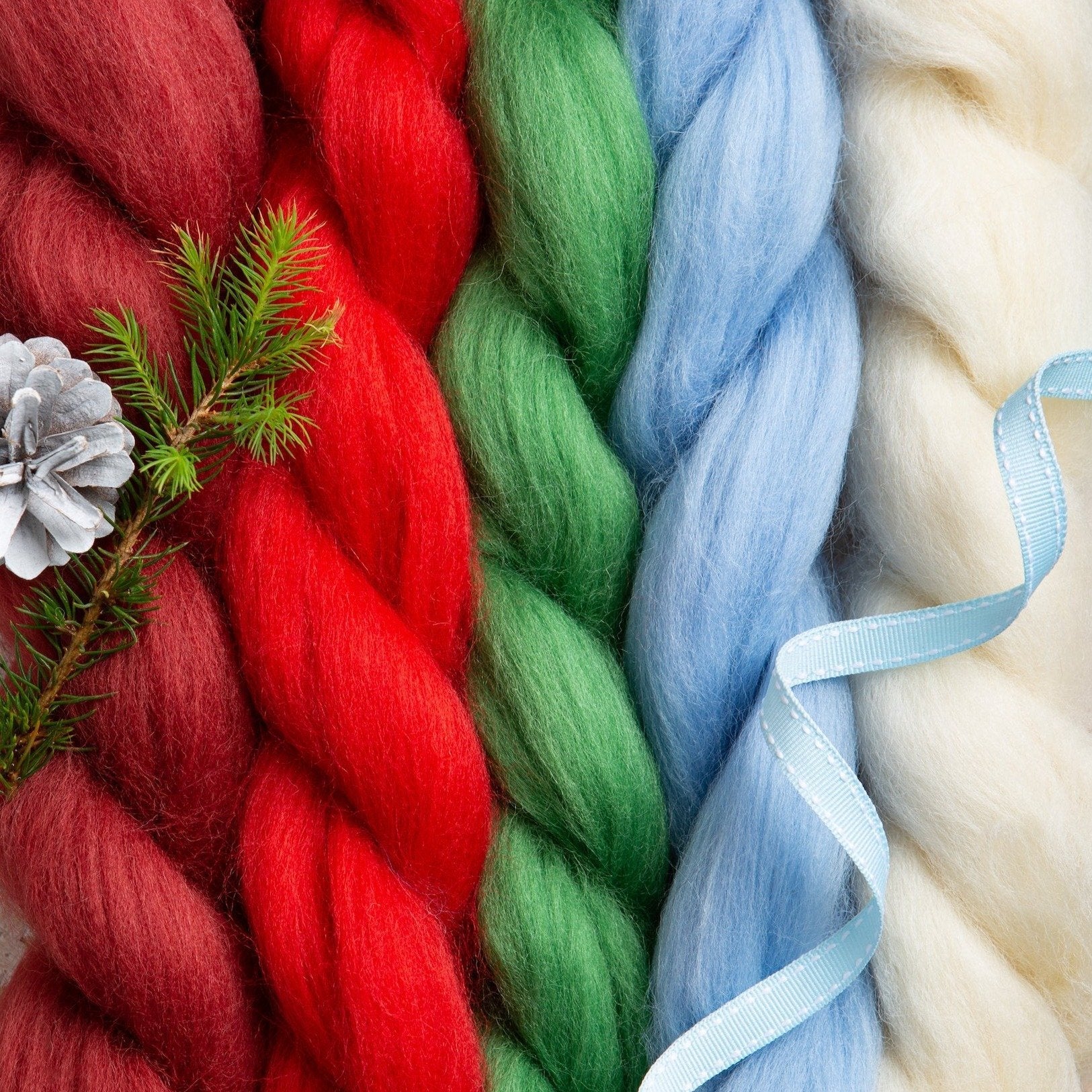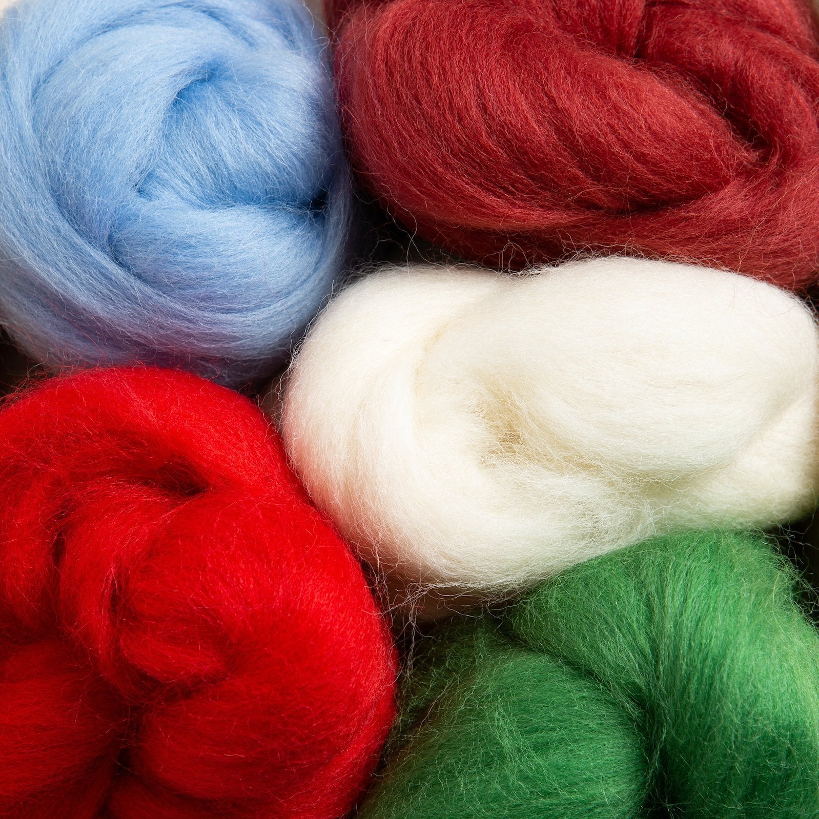 Spark your creative imagination with this felting wool bundle. The Christmas bundle contains 5 festive shades of British wool roving (approximately 100g in total).