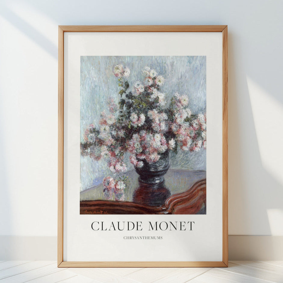 Experience the timeless beauty of the Chrysanthemums Print, featuring a delicate and detailed monet-style floral design. The soft hues and expressive strokes add a touch of elegance to any room. A must-have for those seeking a classic and sophisticated addition to their home decor.
