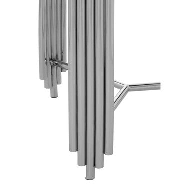 - A reflective stainless steel base adds brightness to seating arrangements.