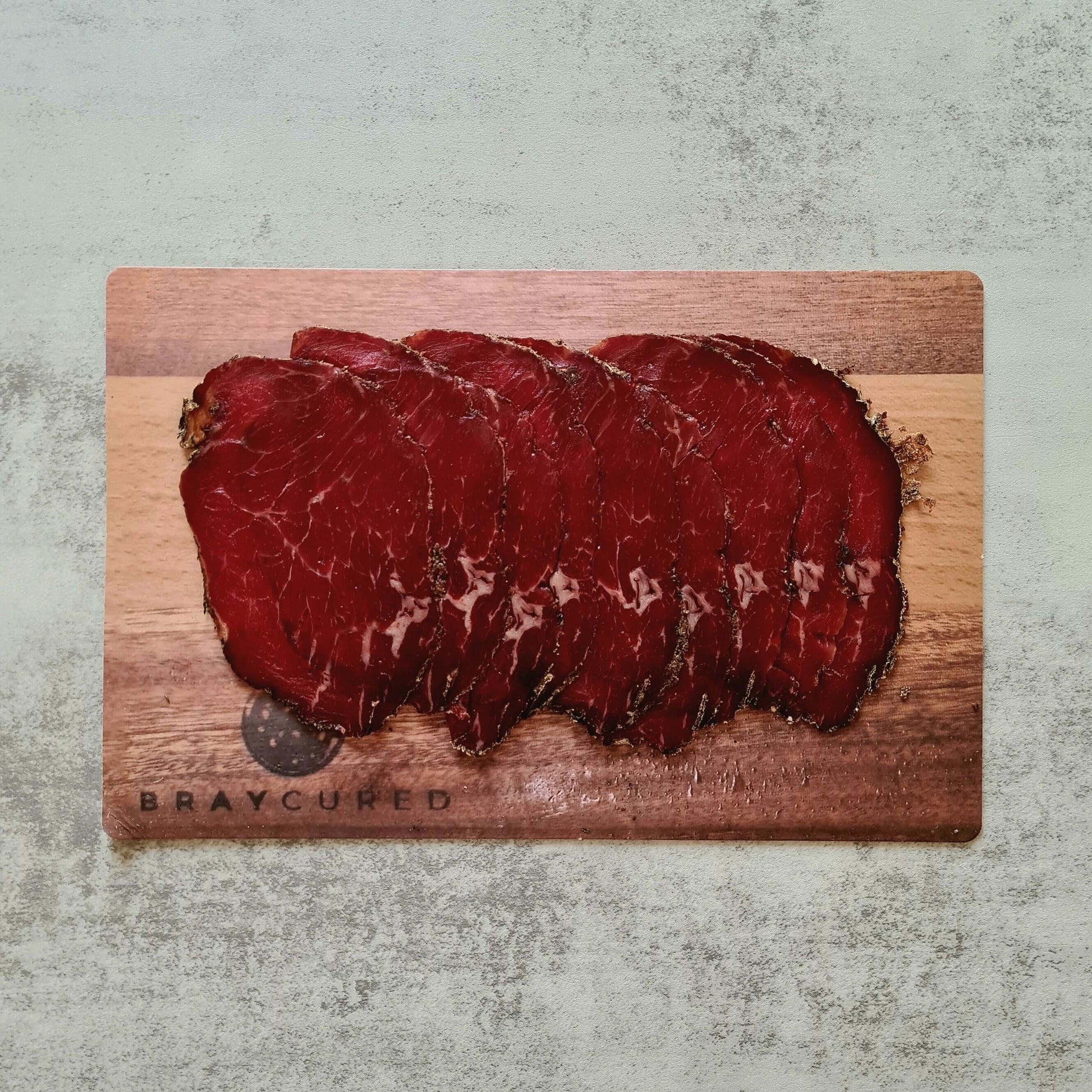 Wafer thin slices of fresh, light textured dry-cured beef, air-dried for several weeks to create the perfect flavour. A great cured meat to make a meal of, as a starter, lunch or canapé with rocket, capers, horseradish, parmesan or a multitude of other flavours. For the purists, enjoy it as it comes, with wine.