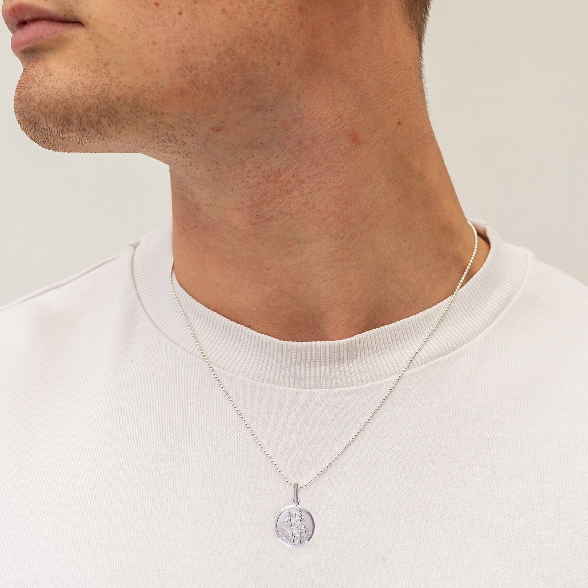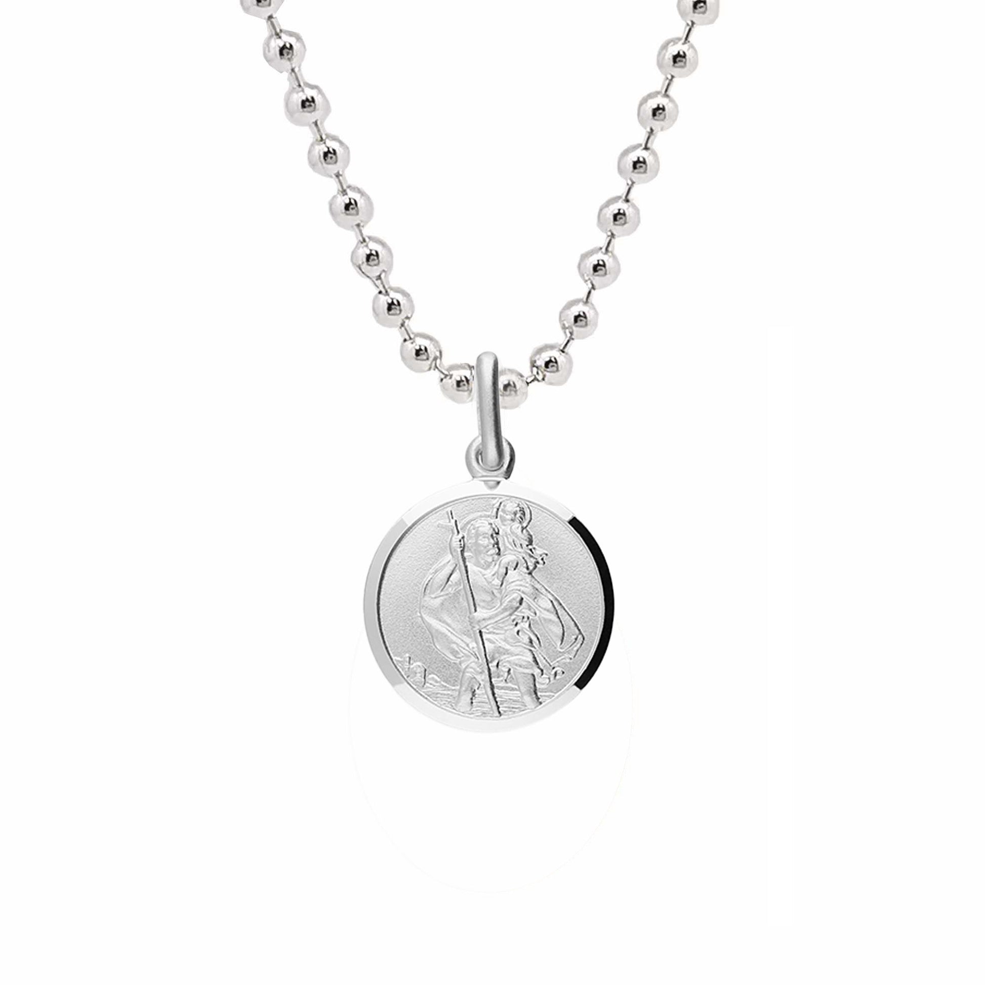 Classic Small St Christopher Necklace Sterling Silver 14mm