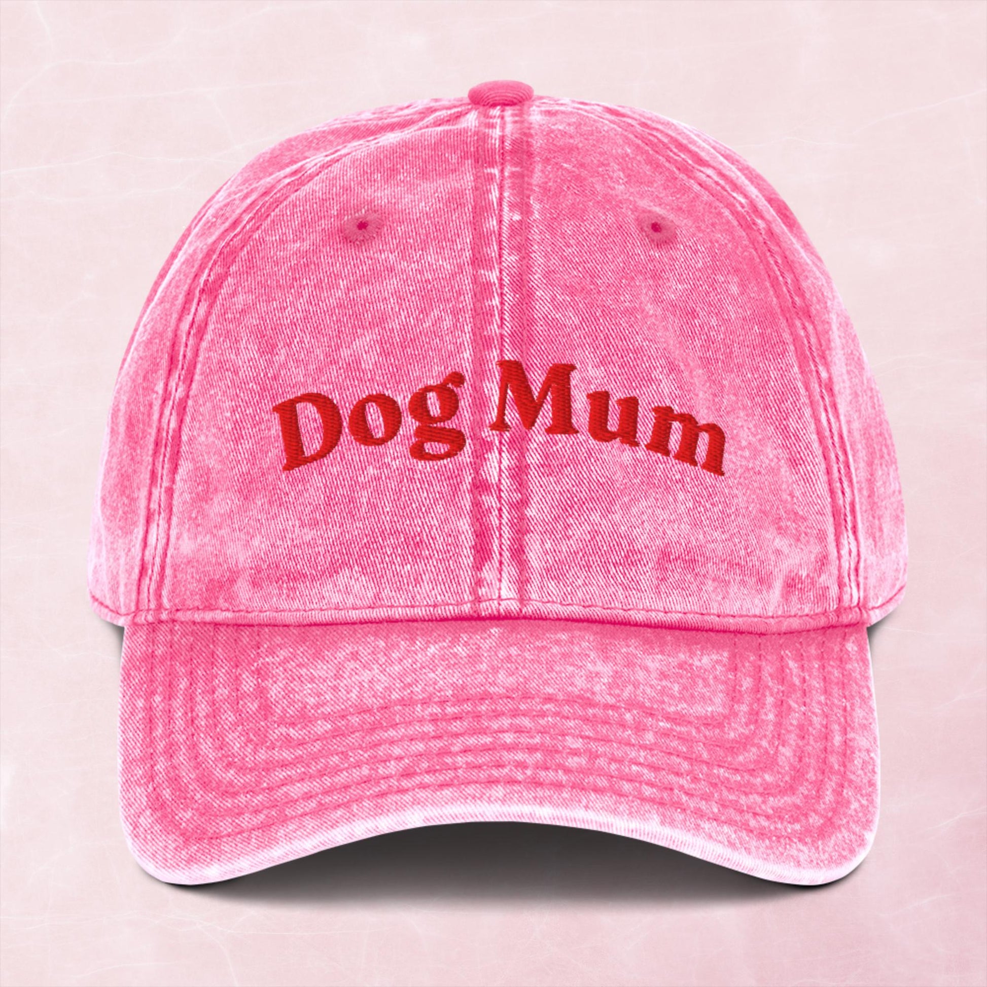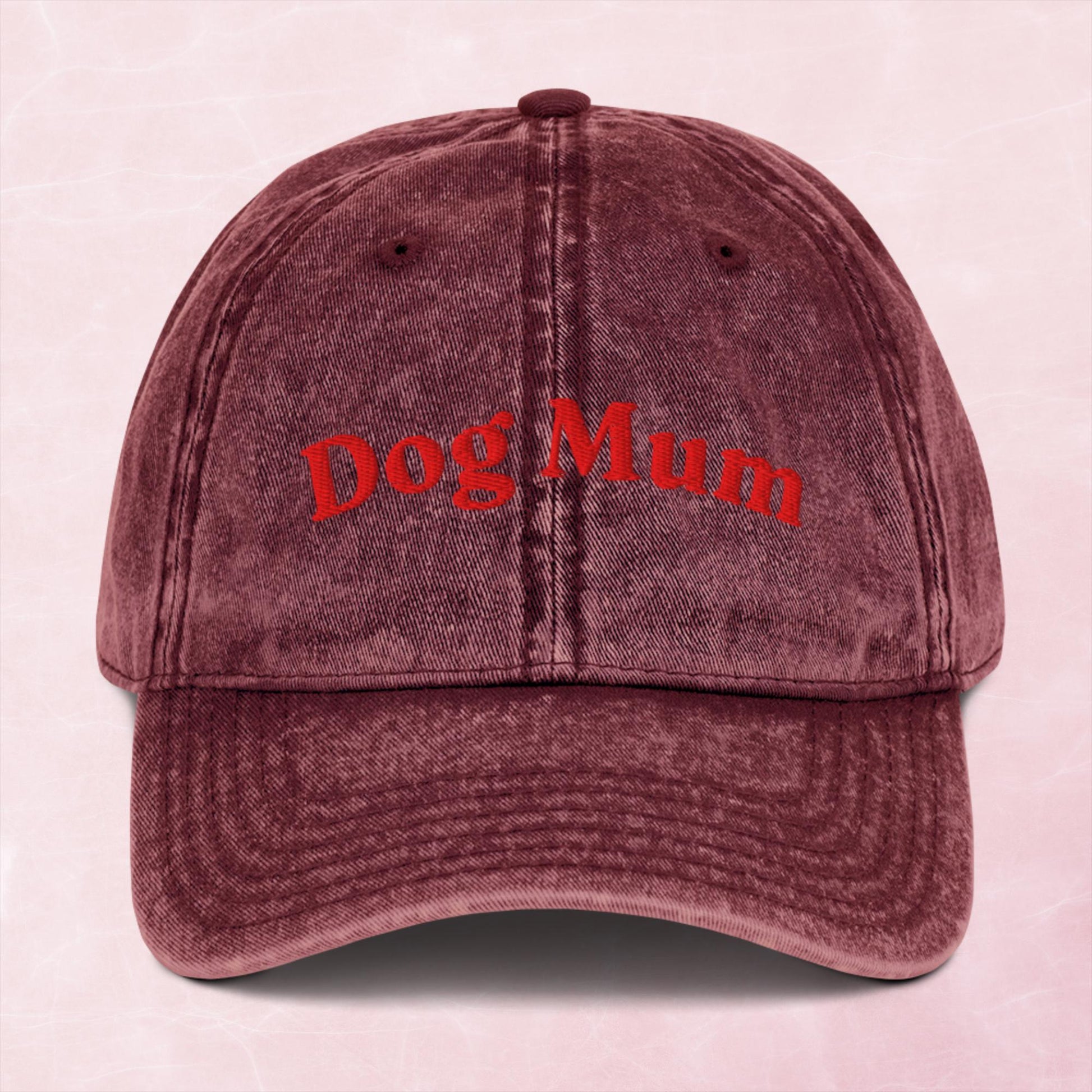 A cool embroidered 'Dog mum' unisex cap on a washed out vintage effect cap.