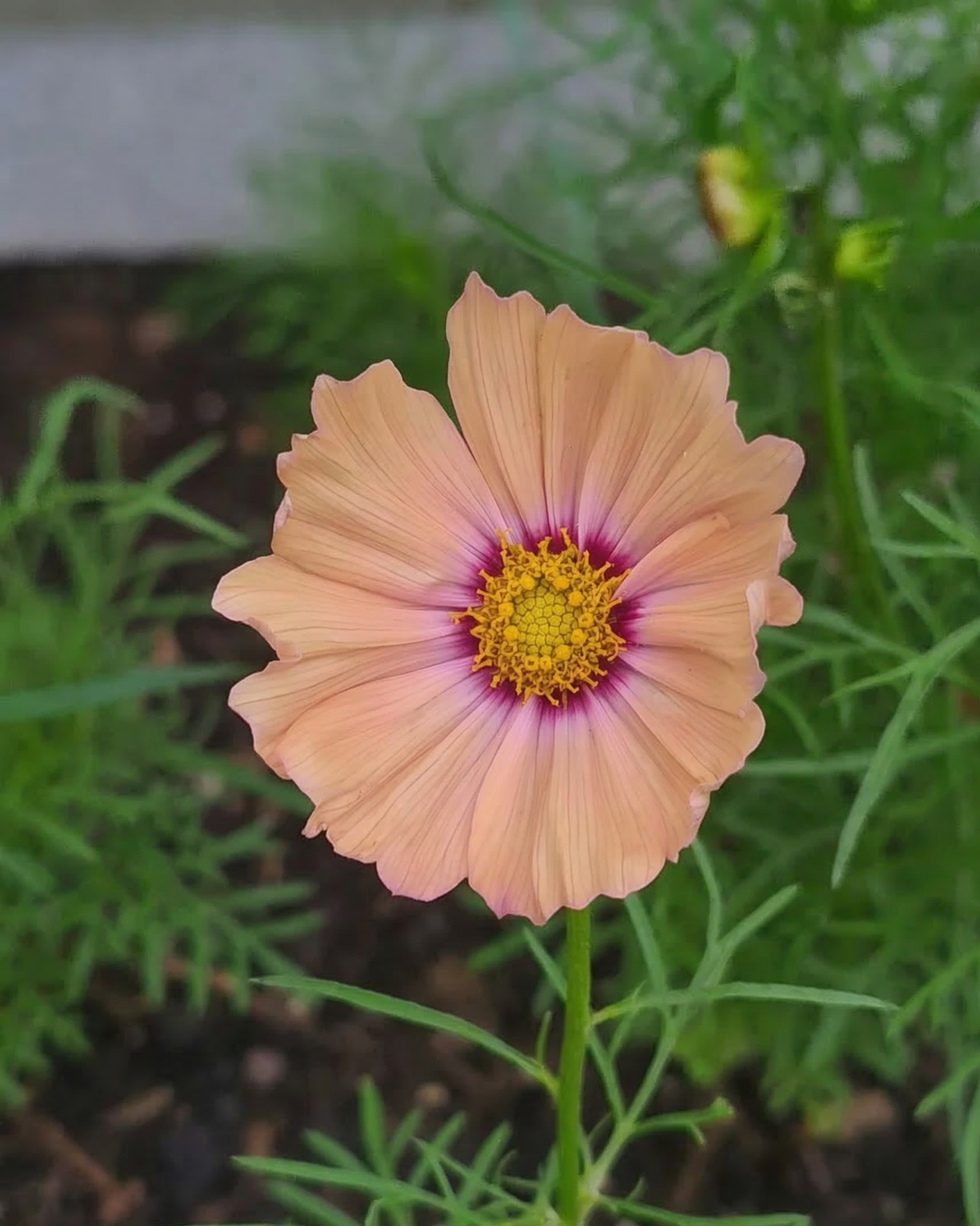 The "Starvation" Rule: One of the most important aspects of Cosmos biology is its dislike of rich soil. If grown in manured ground or treated with nitrogen-heavy fertilizers, the plant will put all its energy into massive green foliage, often failing to produce any flowers at all. For the best apricot display, plant them in poor, dry, or sandy soil and avoid feeding entirely.
